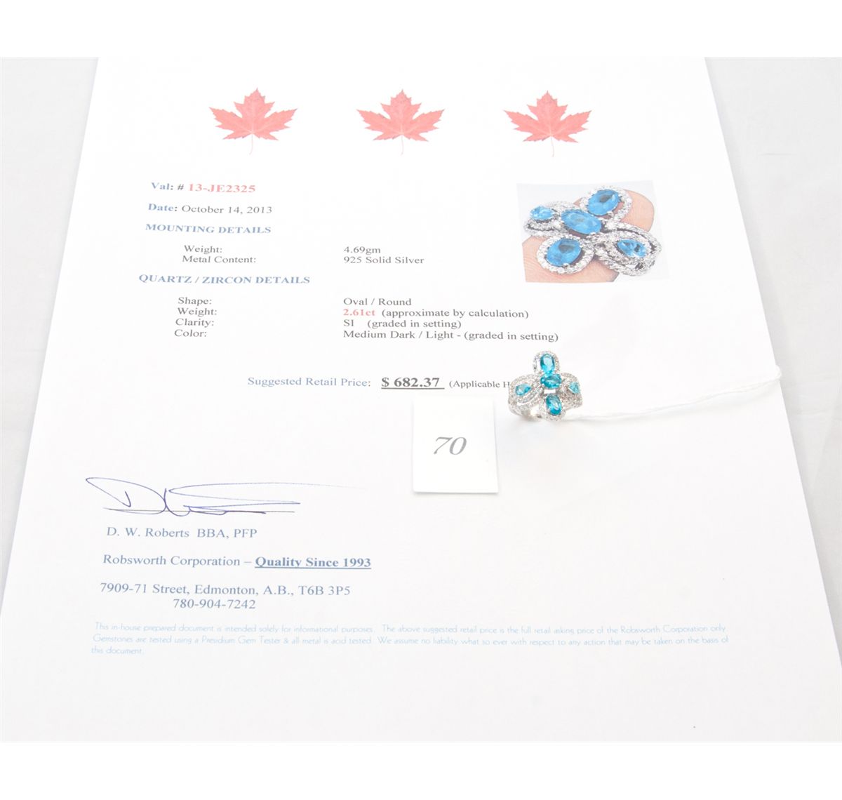 and zircon ring. appraised value $682.37