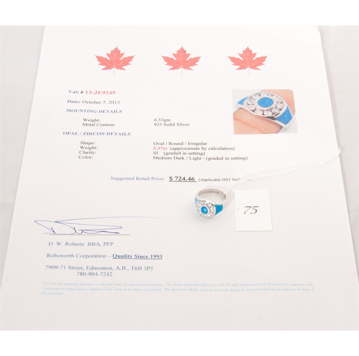 and zircon ring. estimated value $724.46