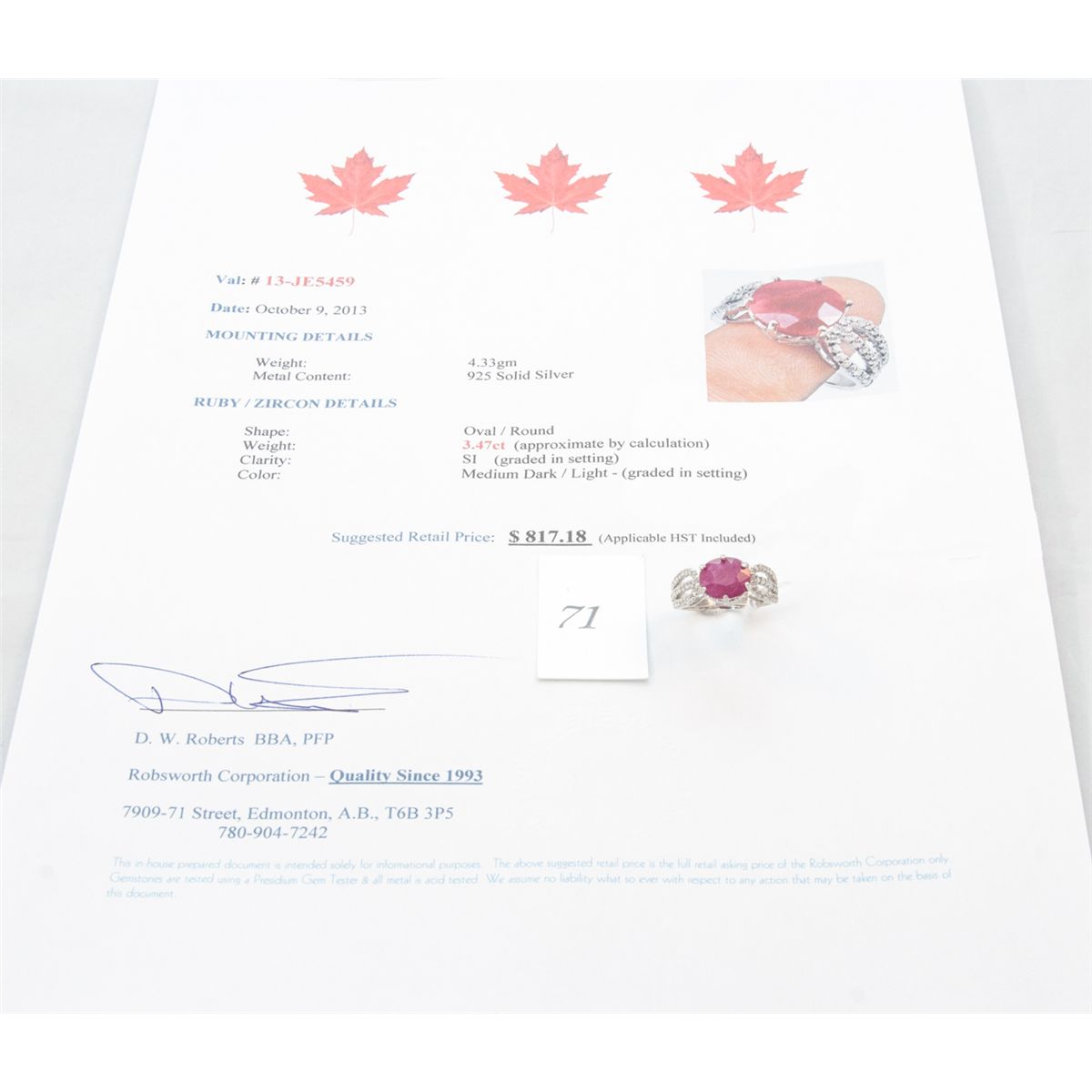 zircon ring. appraised value $817.18