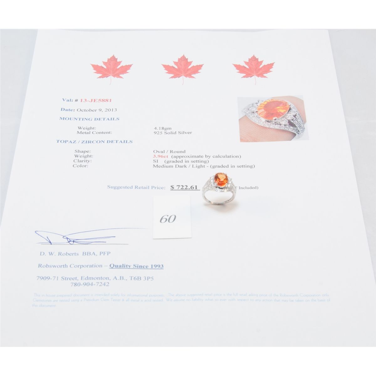 and zircon ring. $722.61