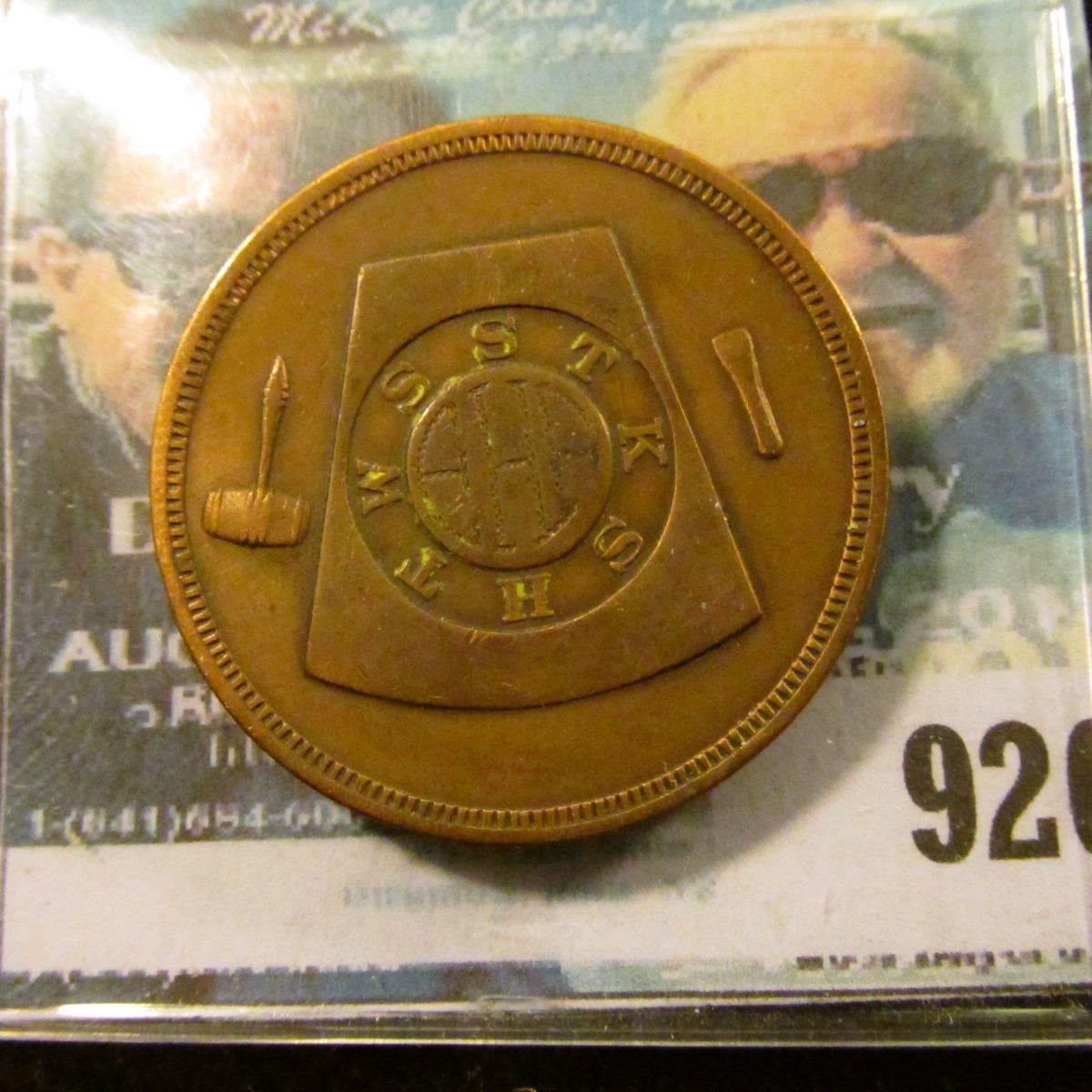 "Trowel Chapter No.49 R.A.M./Chartered October 21st/1869/One/Penny/Cedar Rapids, Ia." Masonic Penny.