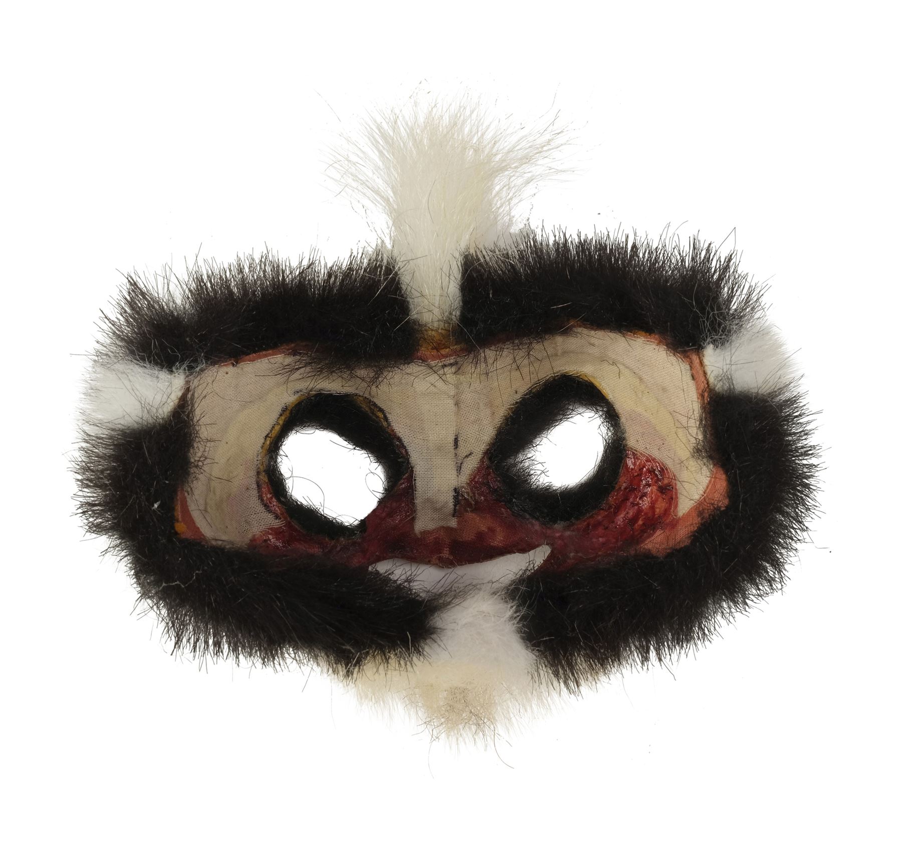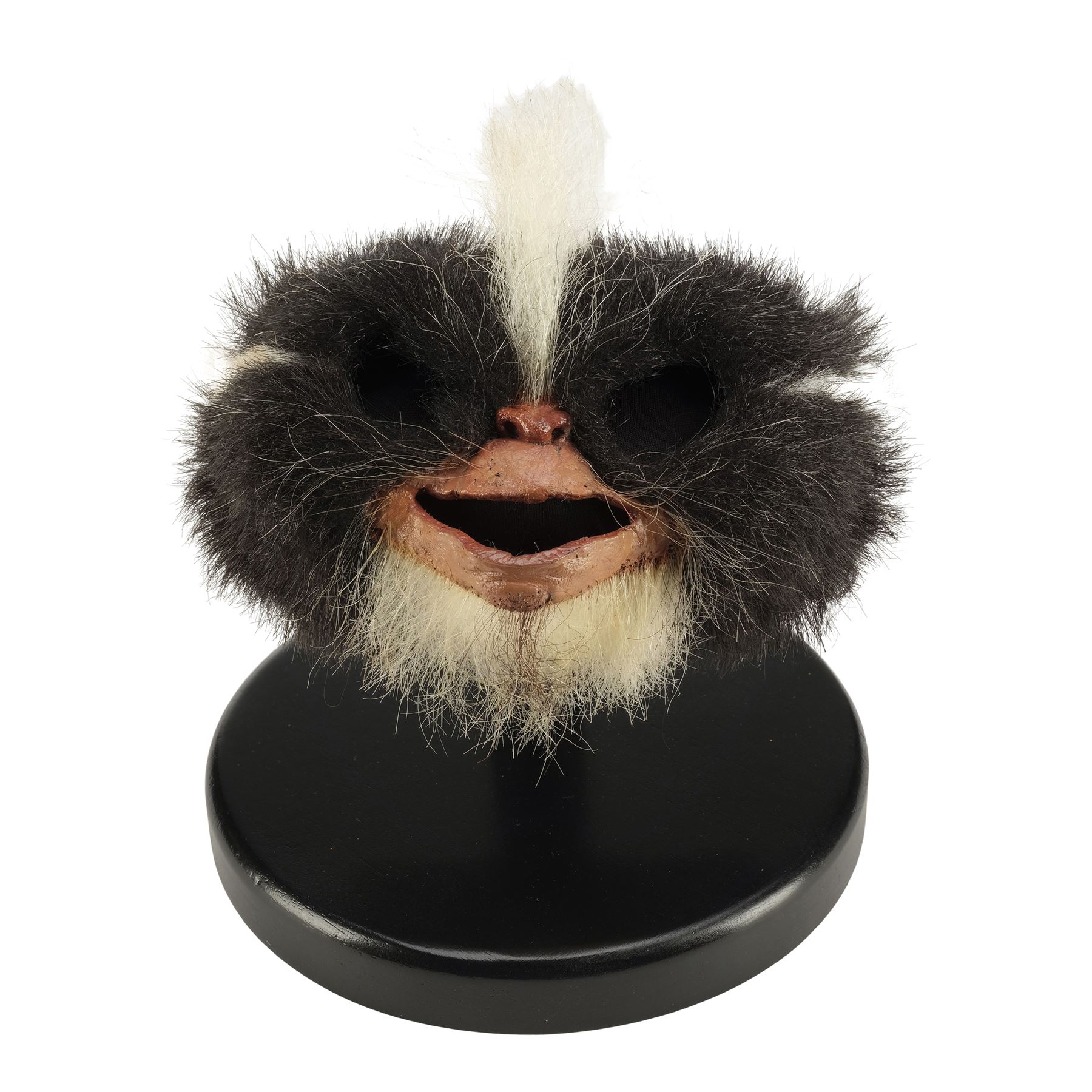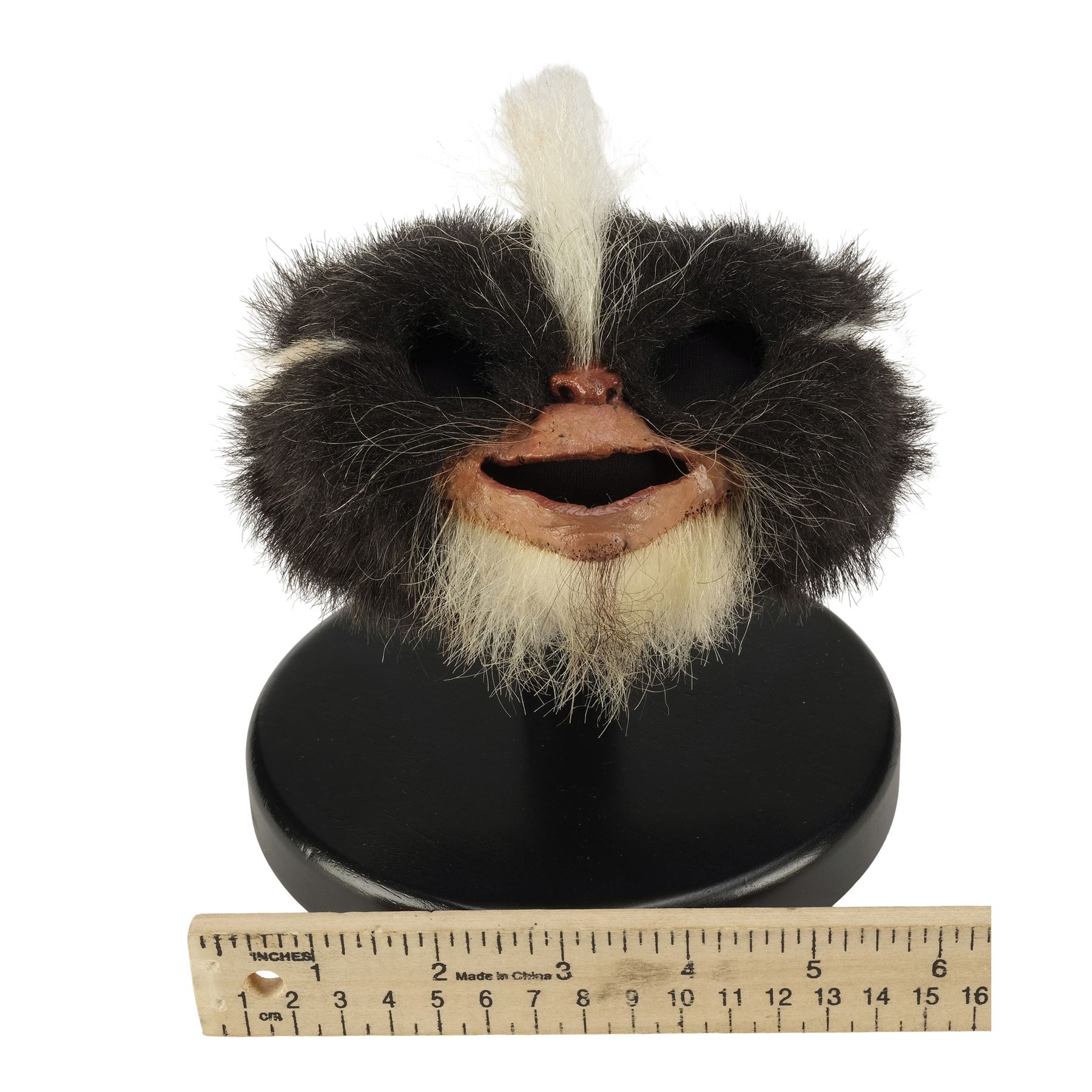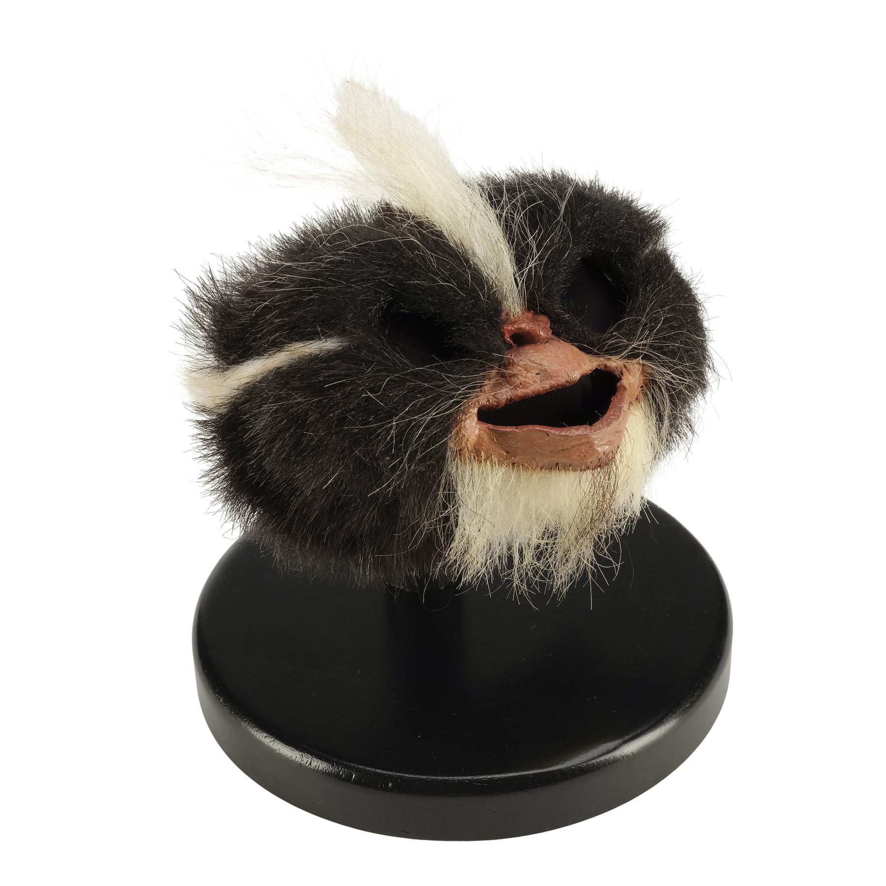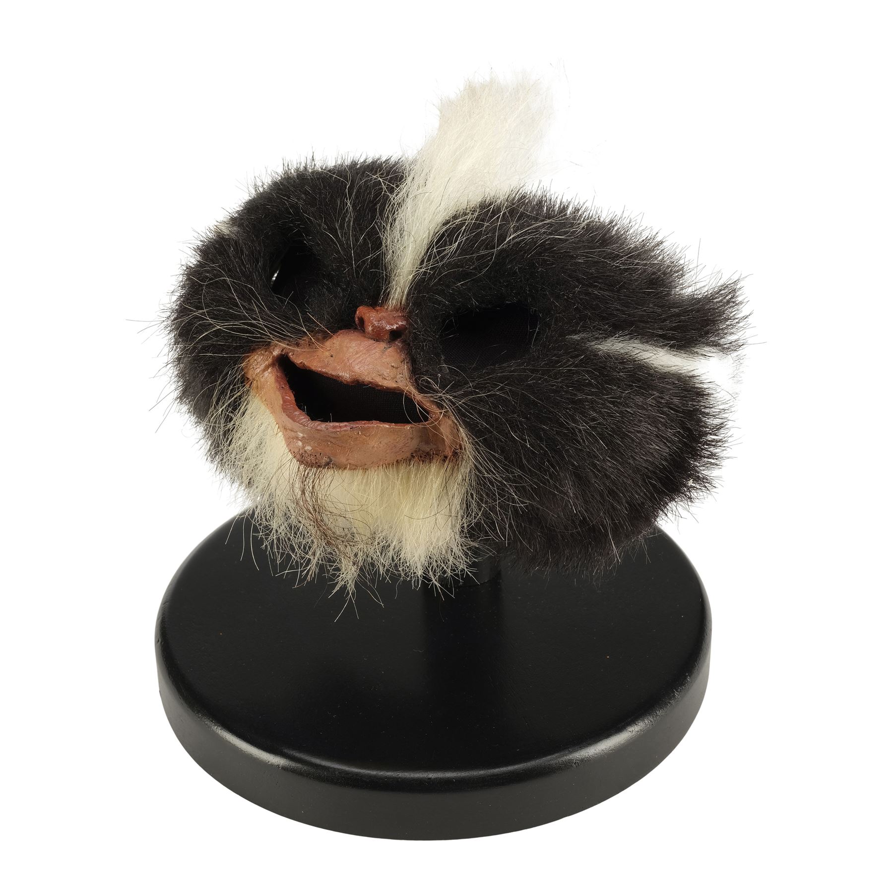 This face was created by Academy Award& reg;-winning Gremlins and Mogwai effects supervisor Rick Baker's Cinovation Studios to change the Mohawk puppet's facial expressions between frames. It is constructed of fiberglass-lined foam latex painted pink on the smirking mouth and nose and hand-punched with Mohawk's signature synthetic black-and-white fur. The fur exhibits yellowing and the reverse exhibits adhesive residue. While the foam latex remains supple due to careful storage, the face remains fragile and should be handled with caution. Dimensions: 5.5" x 6" x 9" (14 cm x 15.25 cm x 23 cm)