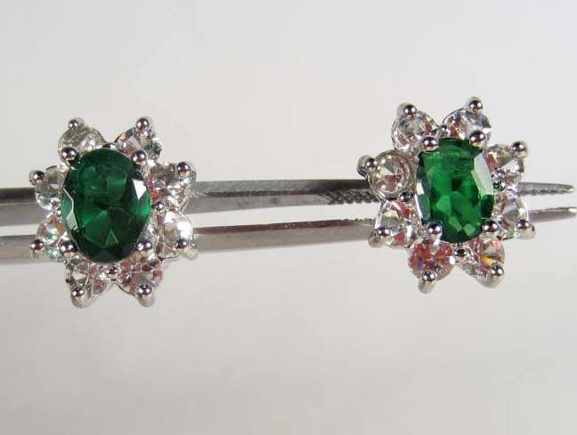 9270 - WHITE GOLD PLATED EMERALD & WHITE TOPAZ EARRINGS