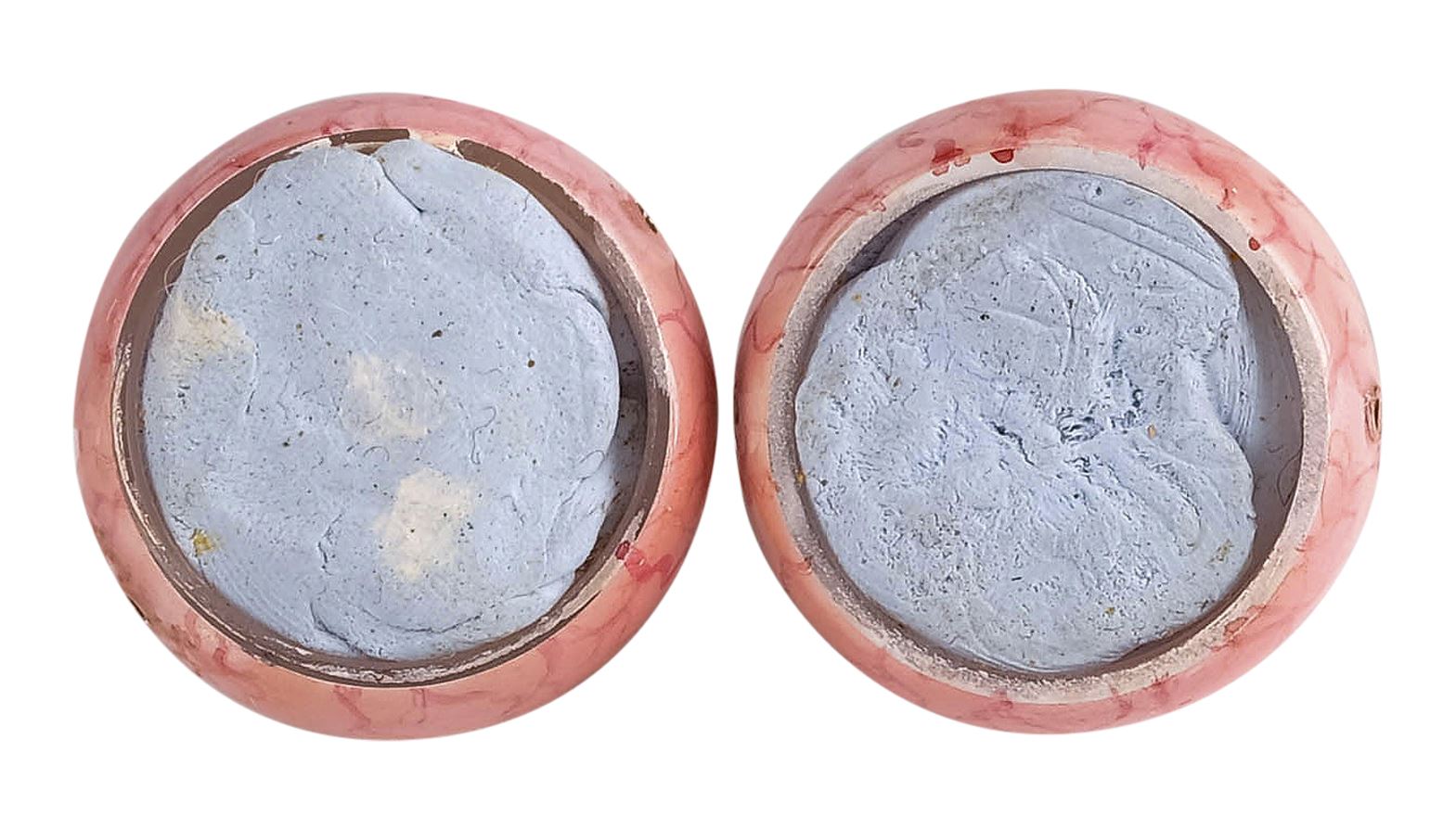 GREMLINS 2: THE NEW BATCH (1990) - Pair of Mogwai Test Eyes - A pair of Mogwai eye paint tests from Joe Dante's Gremlins 2: The New Batch. Production created eyes such as these to test eye color and design against the full gremlin puppets.