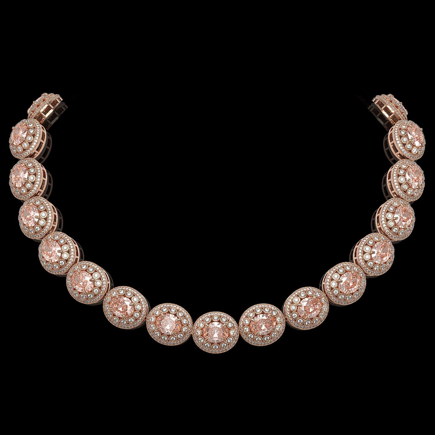 REF-3788H9R - SKU: 43707 ---- 93.04 ctw Morganite & Diamond Victorian Necklace 14K Rose Gold