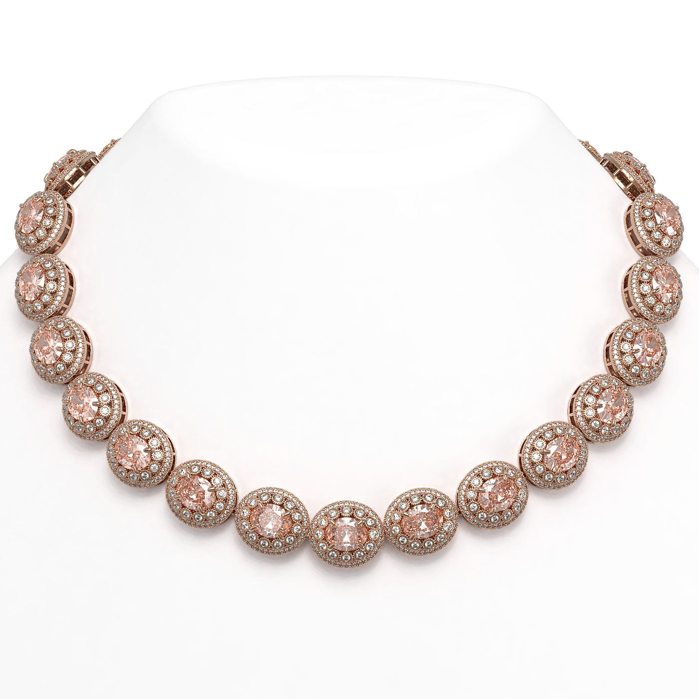 SKU: 43707 ---- 93.04 ctw Morganite & Diamond Victorian Necklace 14K Rose Gold