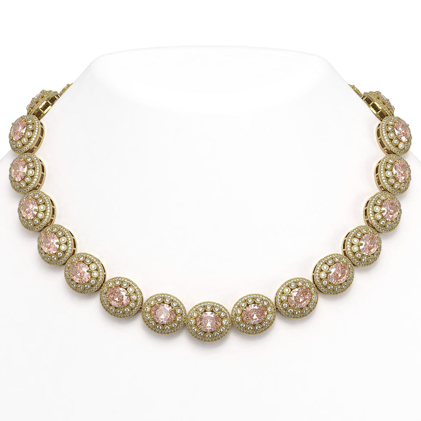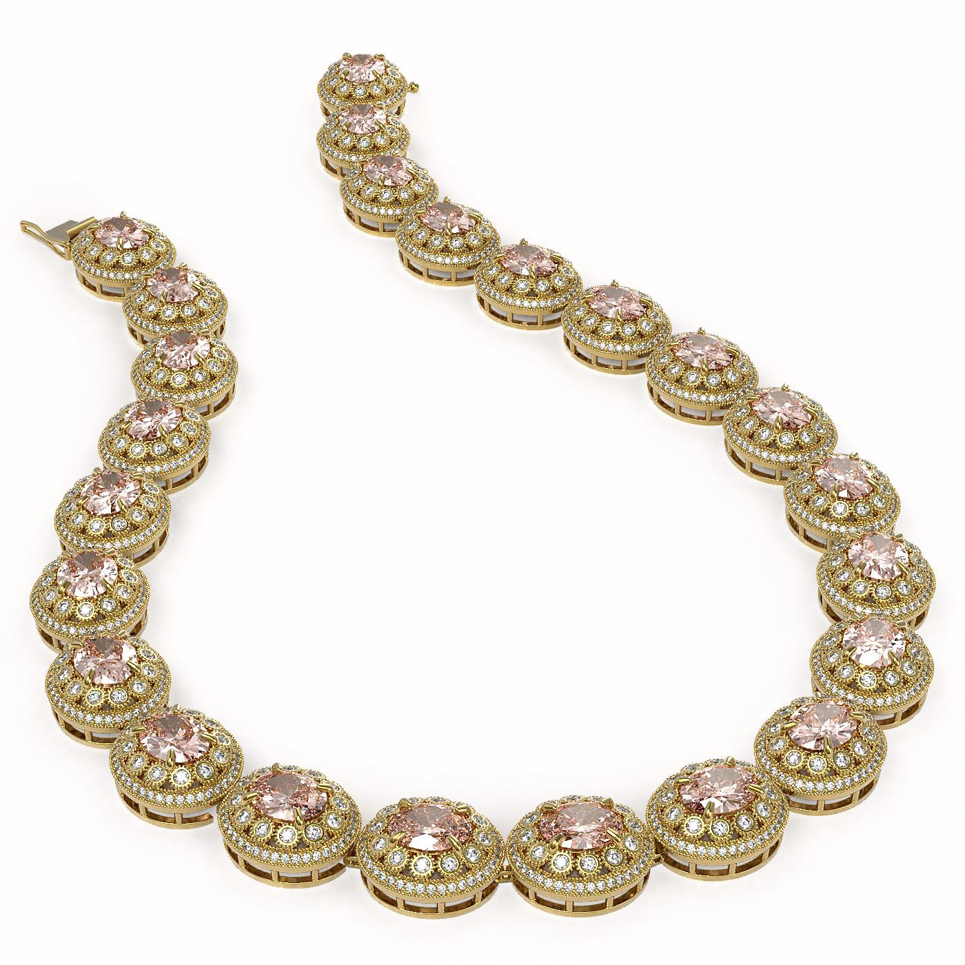REF-3788M9G - SKU: 43708 ---- 93.04 ctw Morganite & Diamond Victorian Necklace 14K Yellow Gold