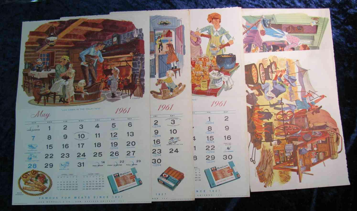 93. 1961 John Morrell & Co. Advertising Calendar pages with Western themes.