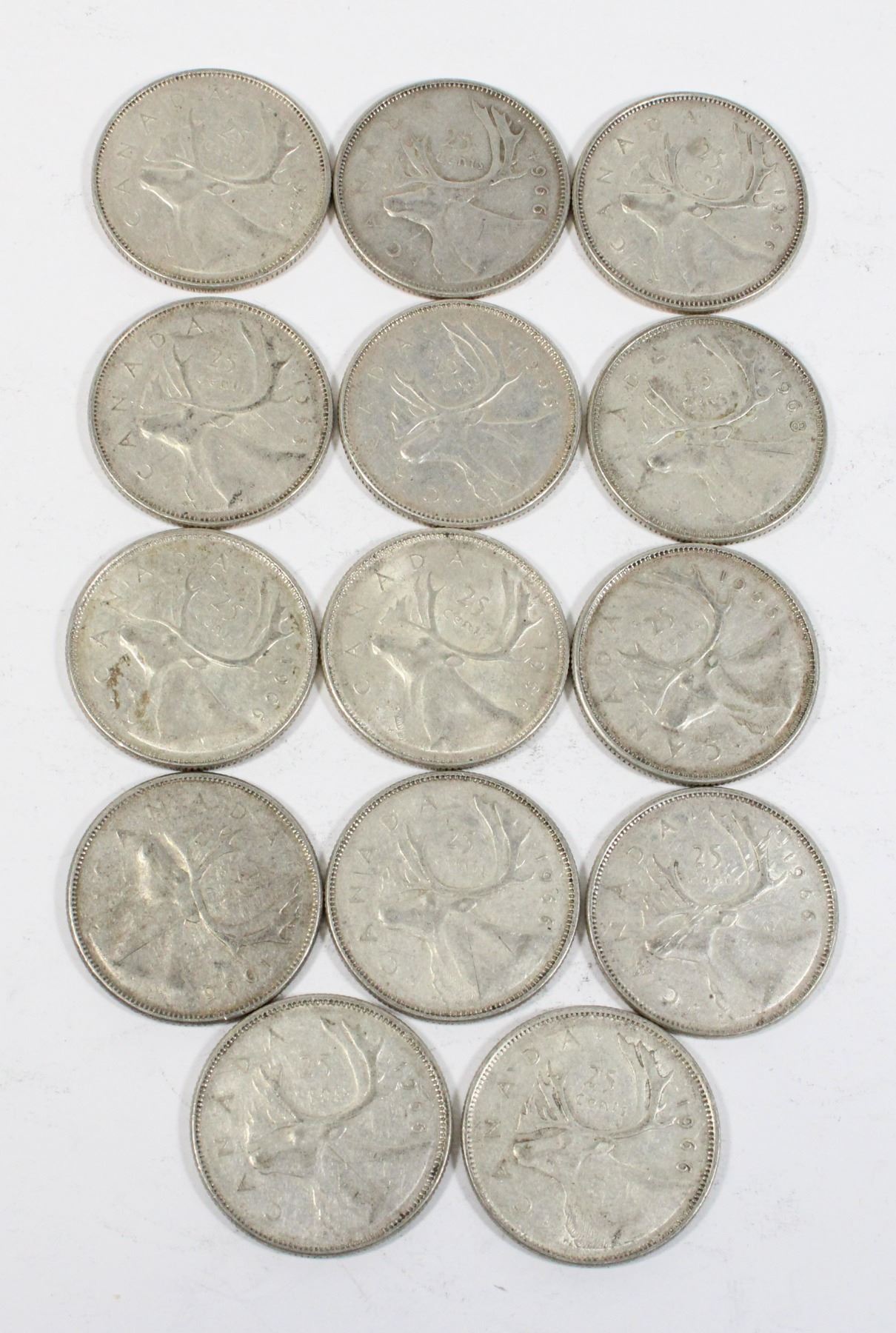 #93 1966 CANADA 25 CENTS SILVER QUARTER COINS LOT