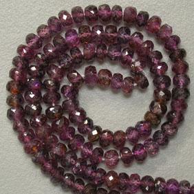 SPINEL RONDELLES STRAND. IT WEIGHTS 93 CTS. EACH BEAD MEASURES 4 MM. LENGTH OF THE STRAND: 16 INCHES. INCLUDED