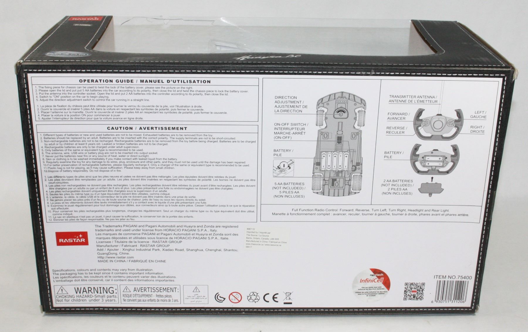 NOS NEW OLD STOCK with wear to plastic box cover- RASTAR Pagani Huayra BC RC Remote Control Car Toy 1:14 Scale