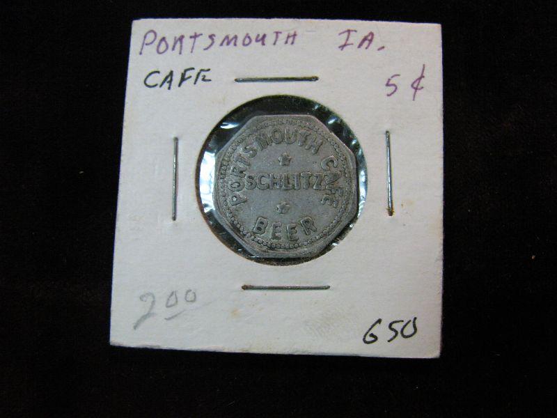 930. Portsmouth Café, Schlitz Beer, Goof for 5c in Trade. Aluminum.