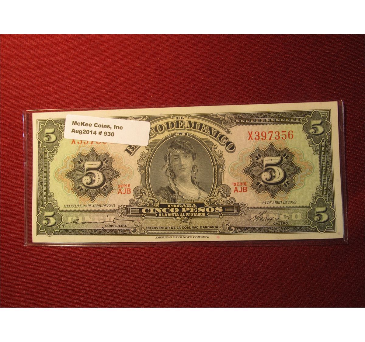 930. Series 24 April 1963 Mexico 5 Pesos banknotes, Crisp Uncirculated