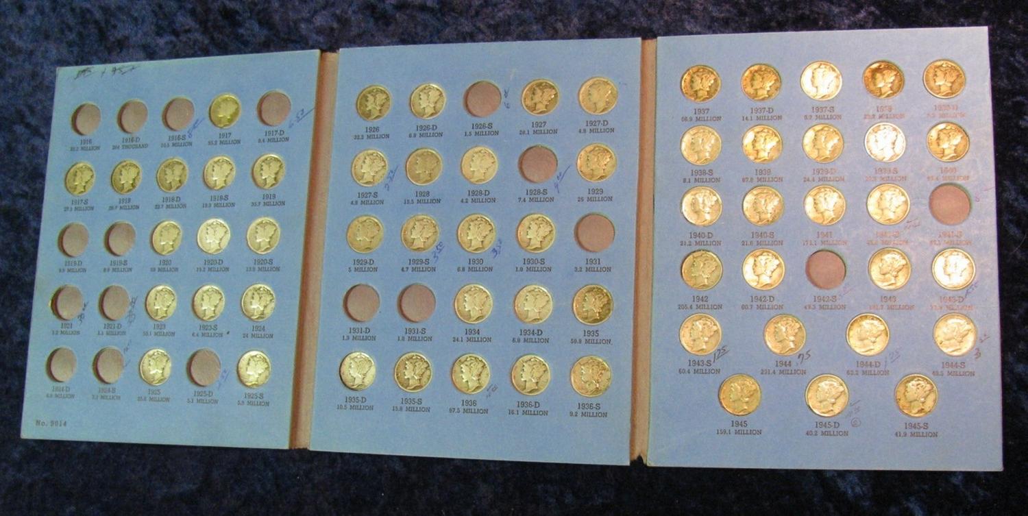 931. Partial Set 1917-45S Mercury Dimes. 59-Coins.