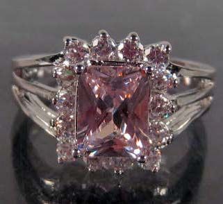 9311 - WHITE GOLD PLATE PINK SAPPHIRE & WHITE TOPAZ RING SIZE 7
