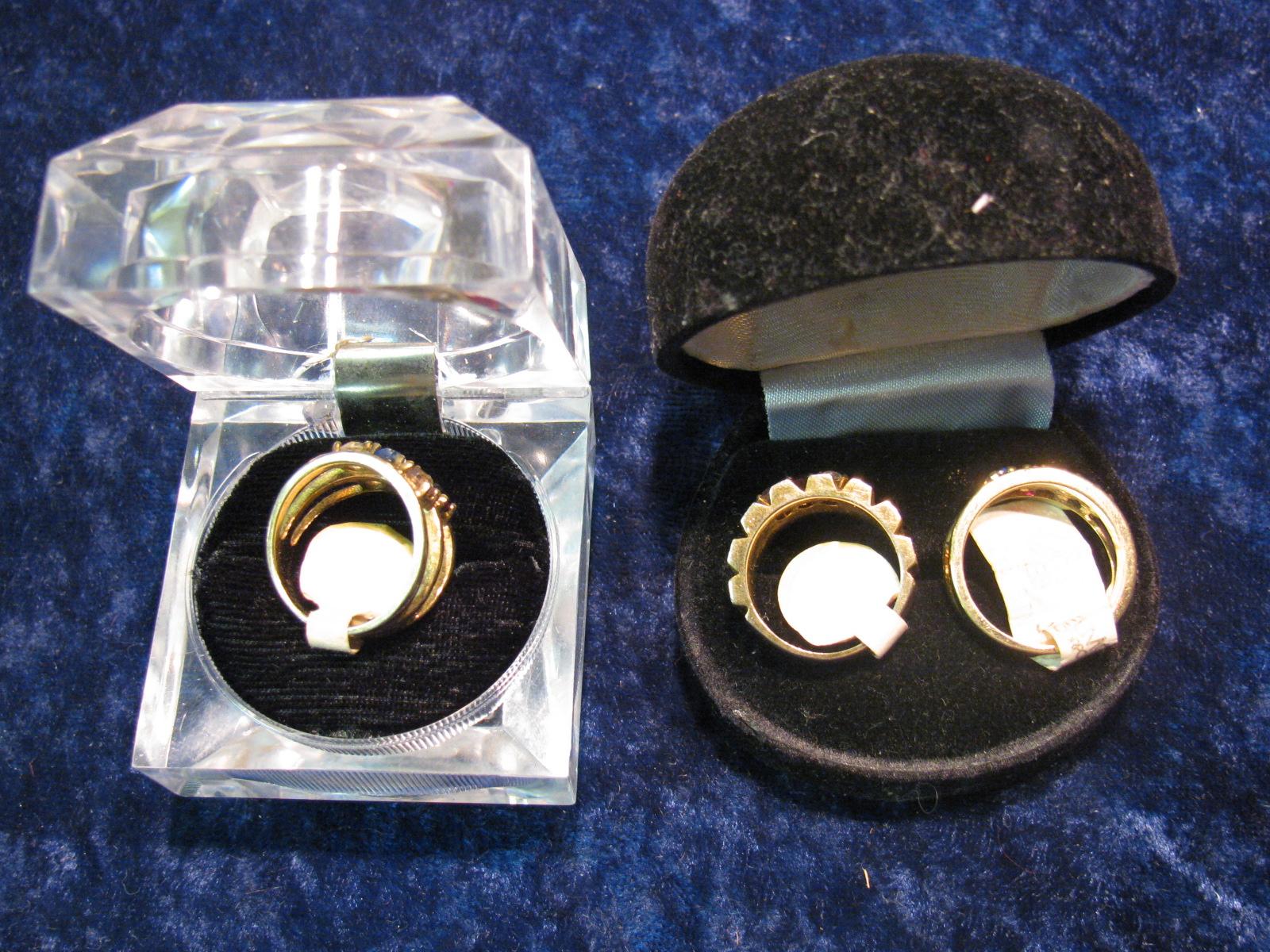 932. (3) Ladies Gold Filled Rings with Colored Stones