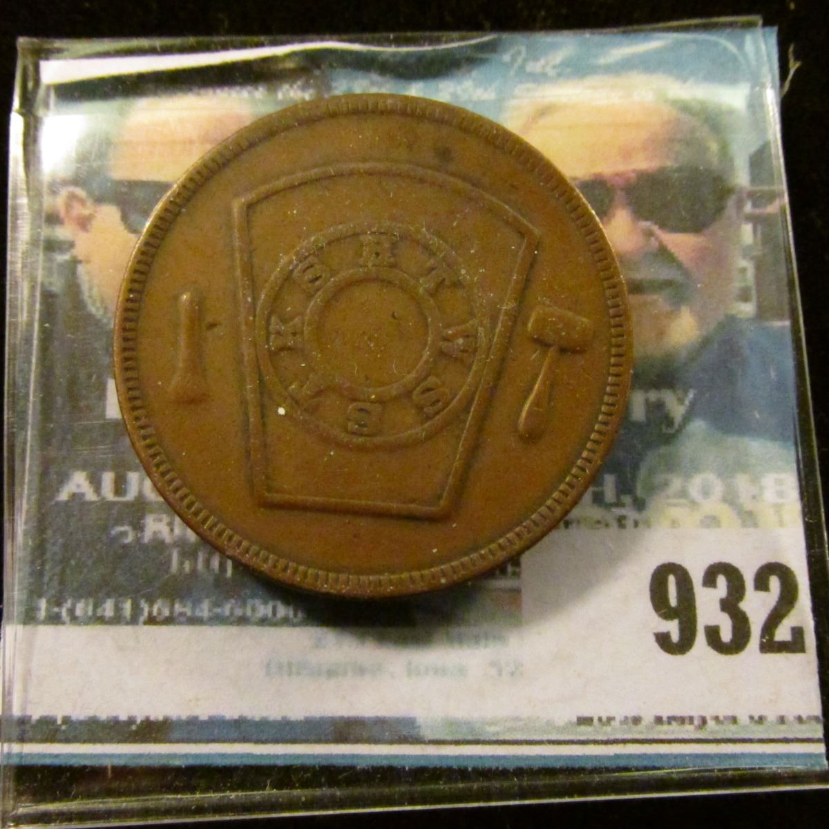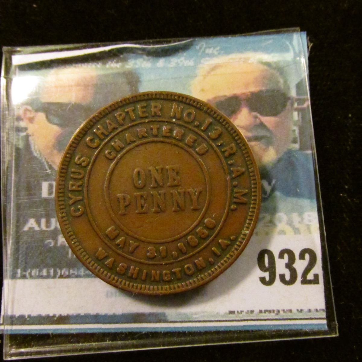 932 _ "Cyrus Chapter No.13 R.A.M./One/Penny/Washinton, Ia." Masonic Penny. VF