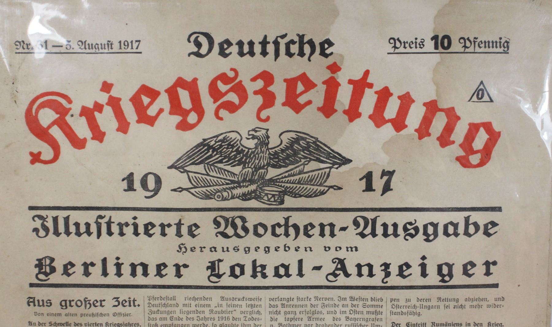 AUGUST 5TH 1917 GERMAN NEWSPAPER "DER KRIEGSZEITUNG" WAR NEWSPAPER PROPAGANDA WITH PHOTOS WORLD WAR ONE CENTRAL POWERS PROPAGANDA MAGAZINE