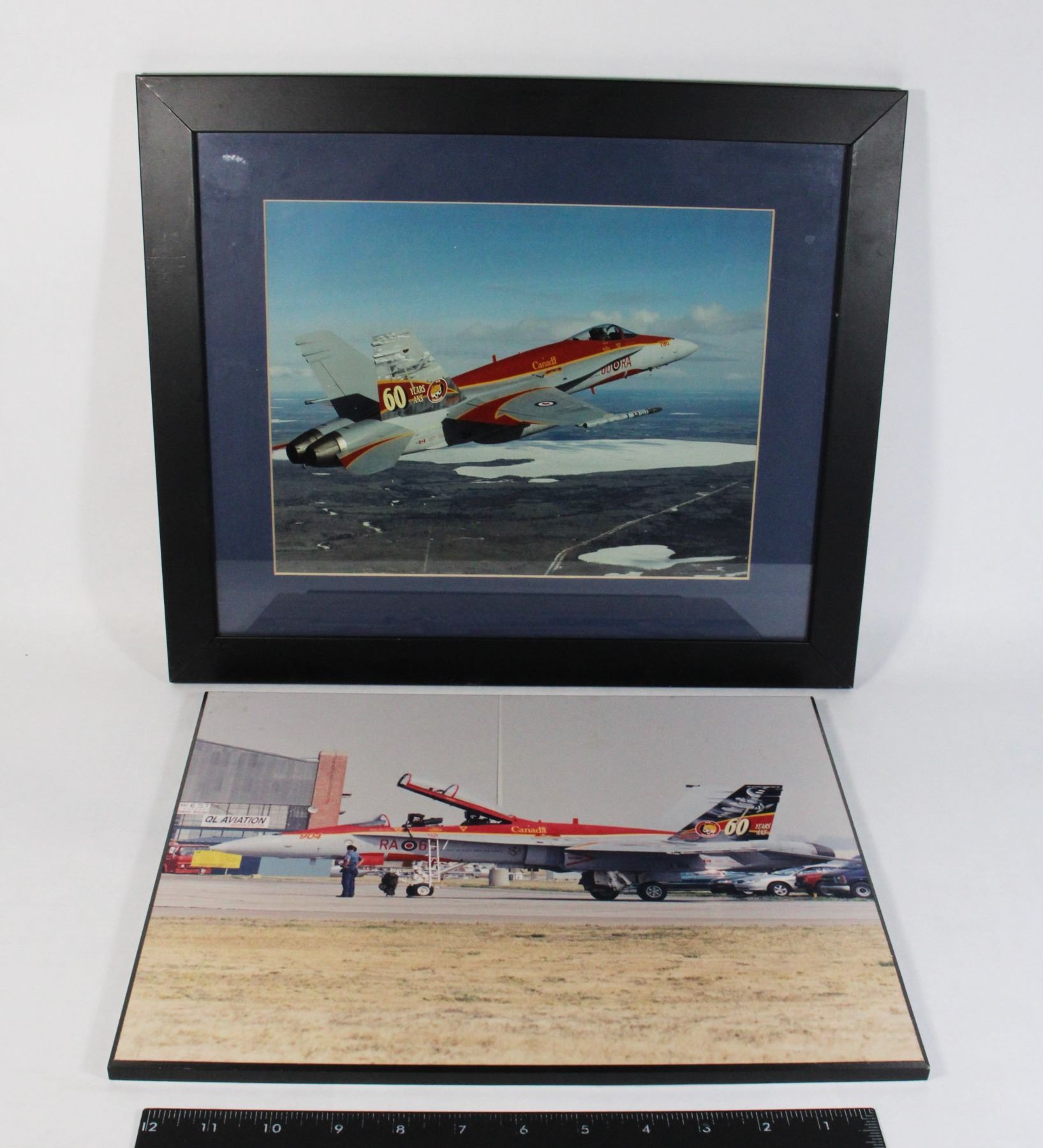 LOT OF TWO ROYAL CANADIAN AIR FORCE PICTURES, ONE IN GLASS FRAME, ANOTHER ON MATTED WOOD.