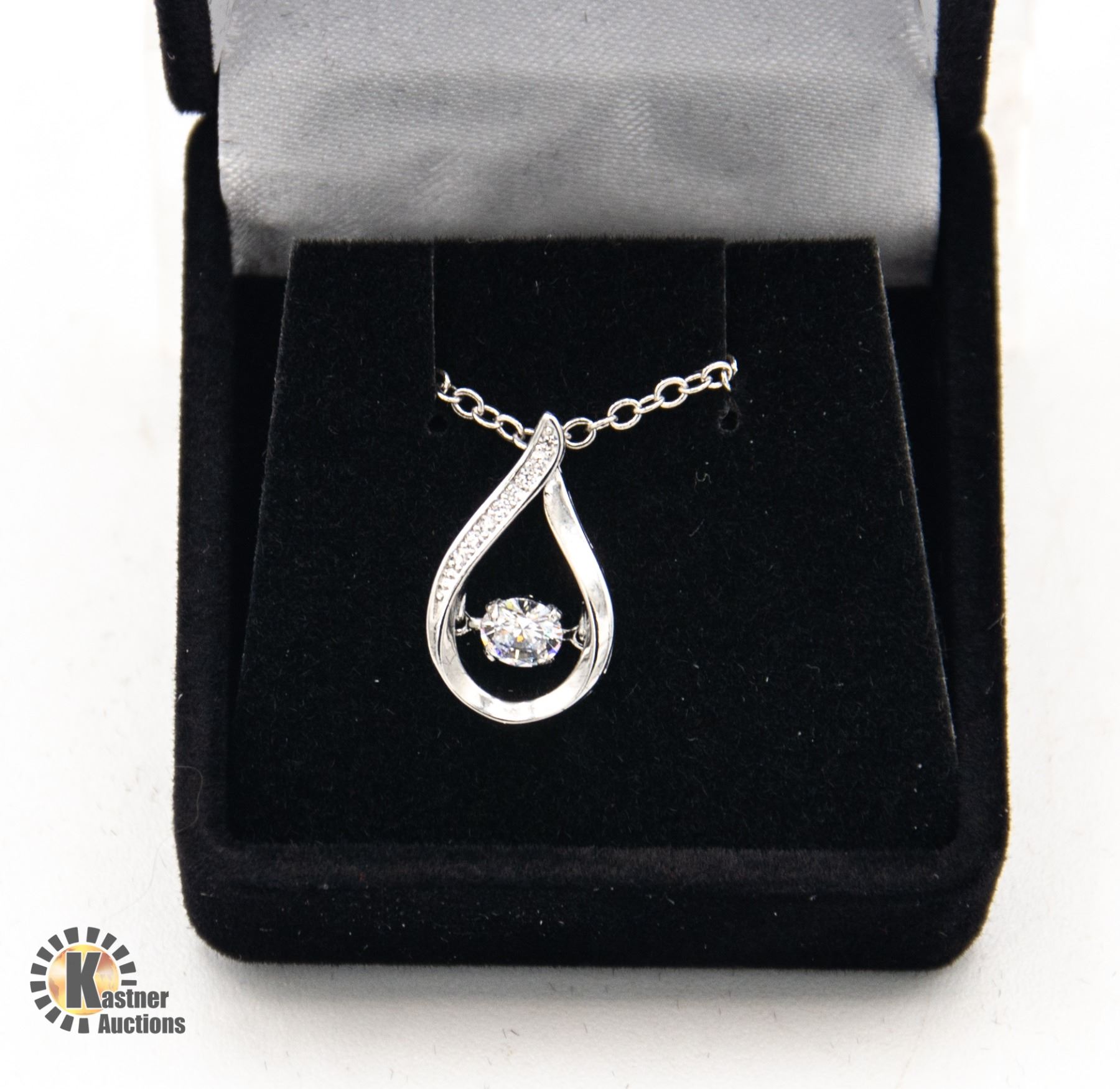 MOISSANITE VVS D COLOR WITH 7 ROUND BRILLIANT CUT CUBIC ZIRCONIA SET IN TEAR DROPPED SHAPED PENDANT SET IN 925 SILVER WEIGHING 0.02 CT TW