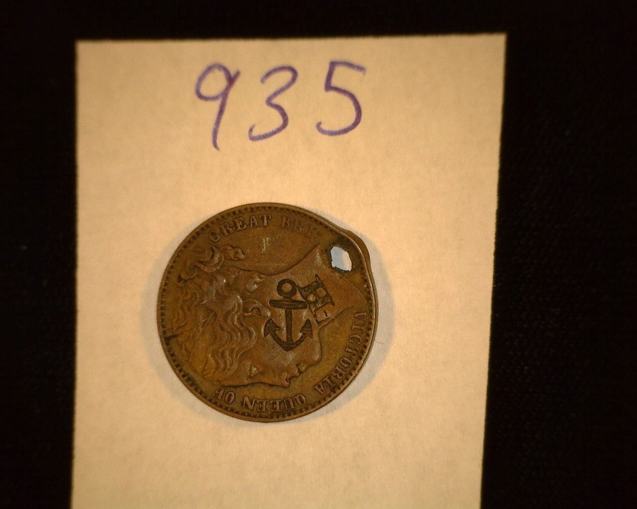 935.ND Holed British Victoria Medal Counter marked "Anchor H".