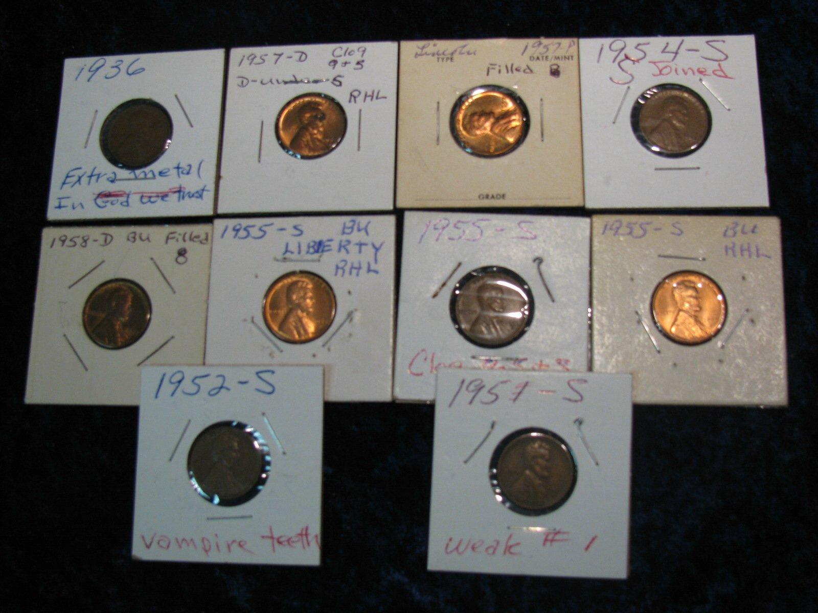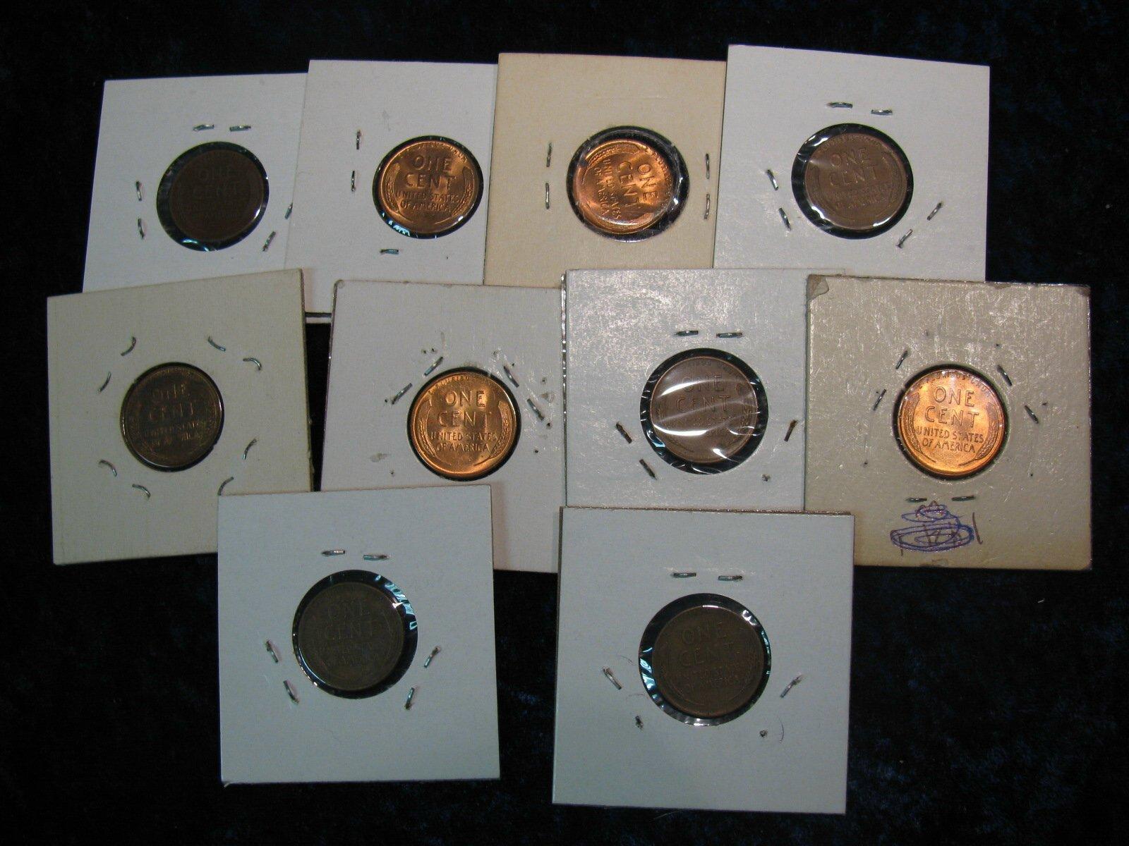 938. (10) Mint Error Lincoln Cents. Filled dies and etc.