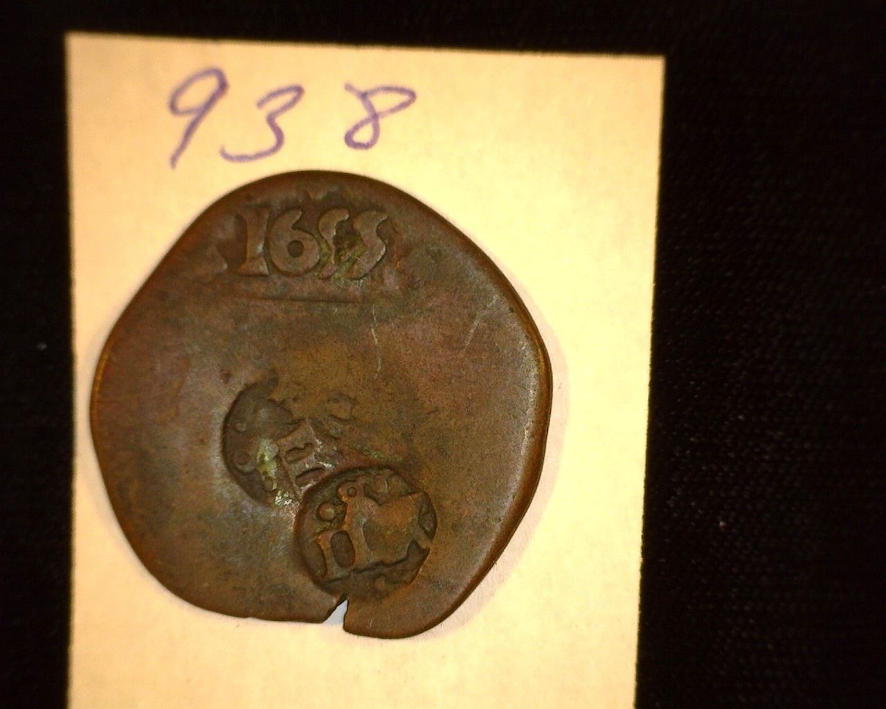 938.1655 Spain 8 Maravedus Counter marked Obv. Rev.VIII.
