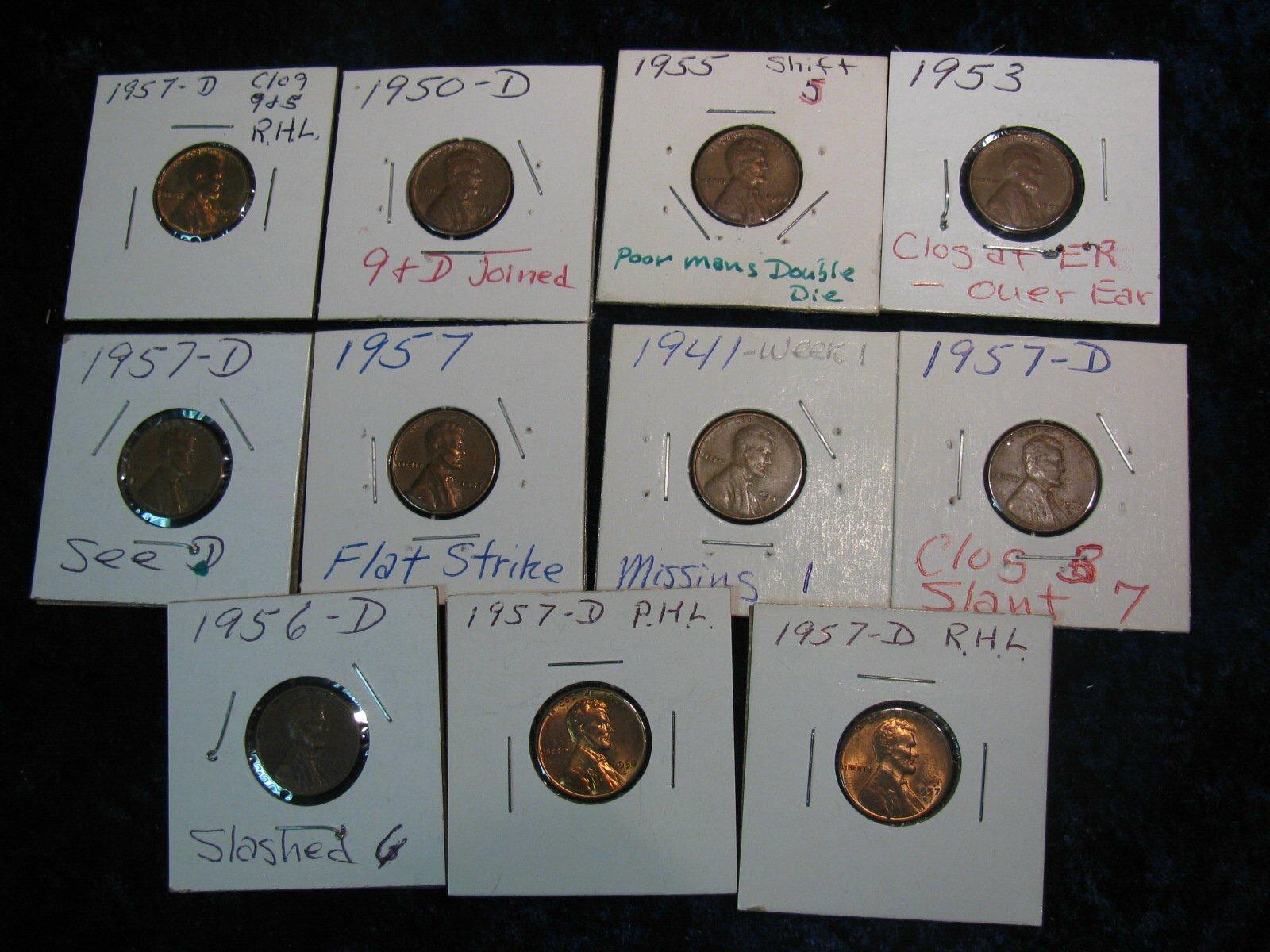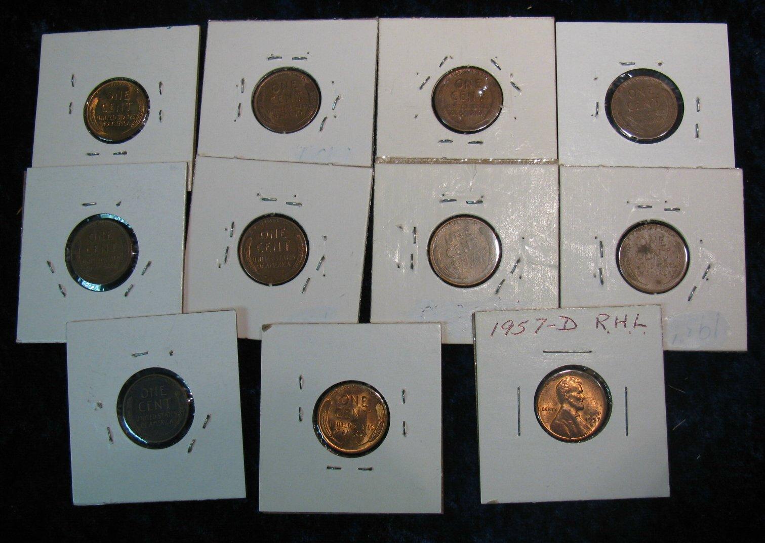 939. (11) Mint Error Lincoln Cents. Filled dies and etc.