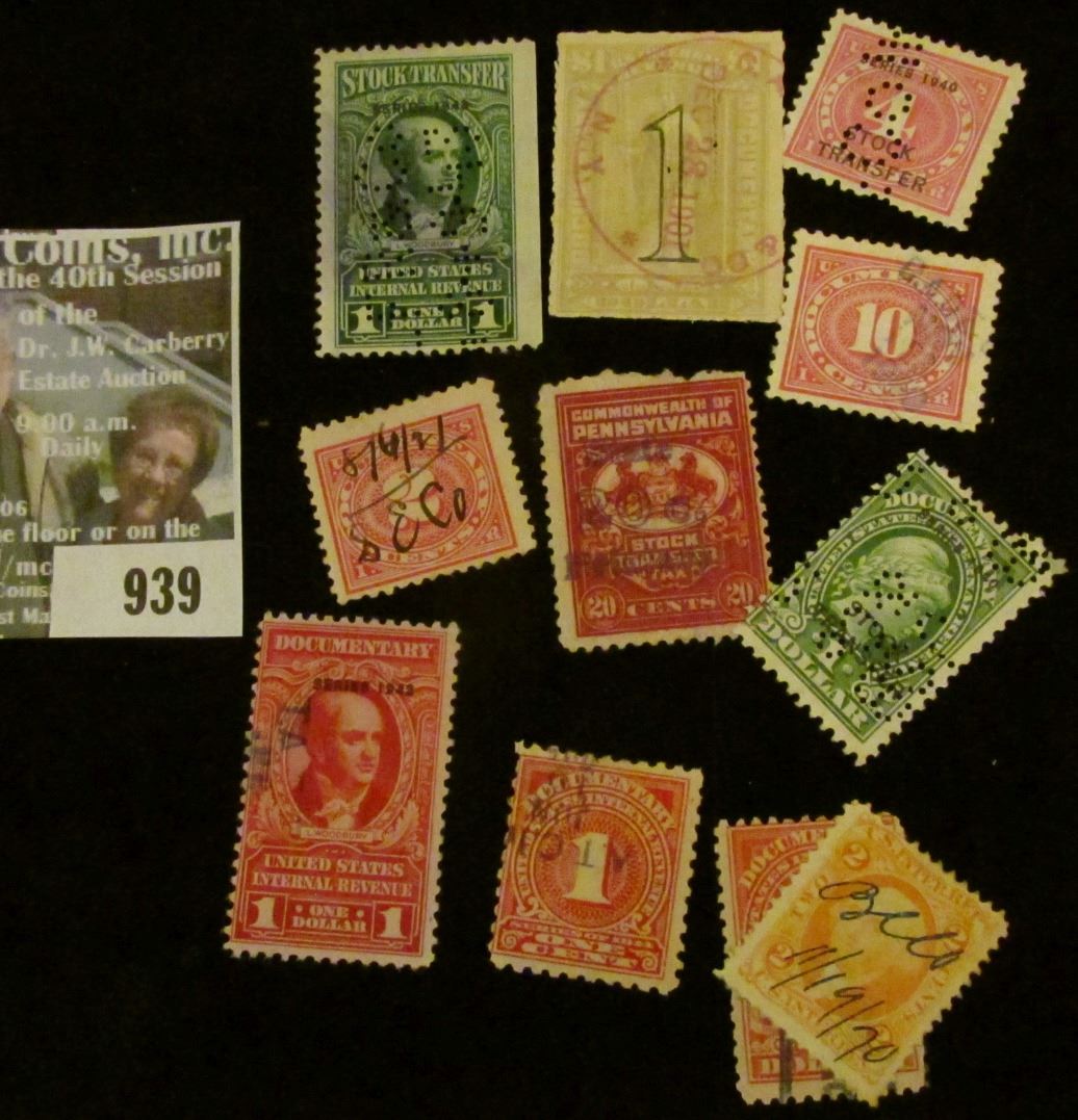 Group of Old U.S. Stock Transfer Documentary Stamps.
