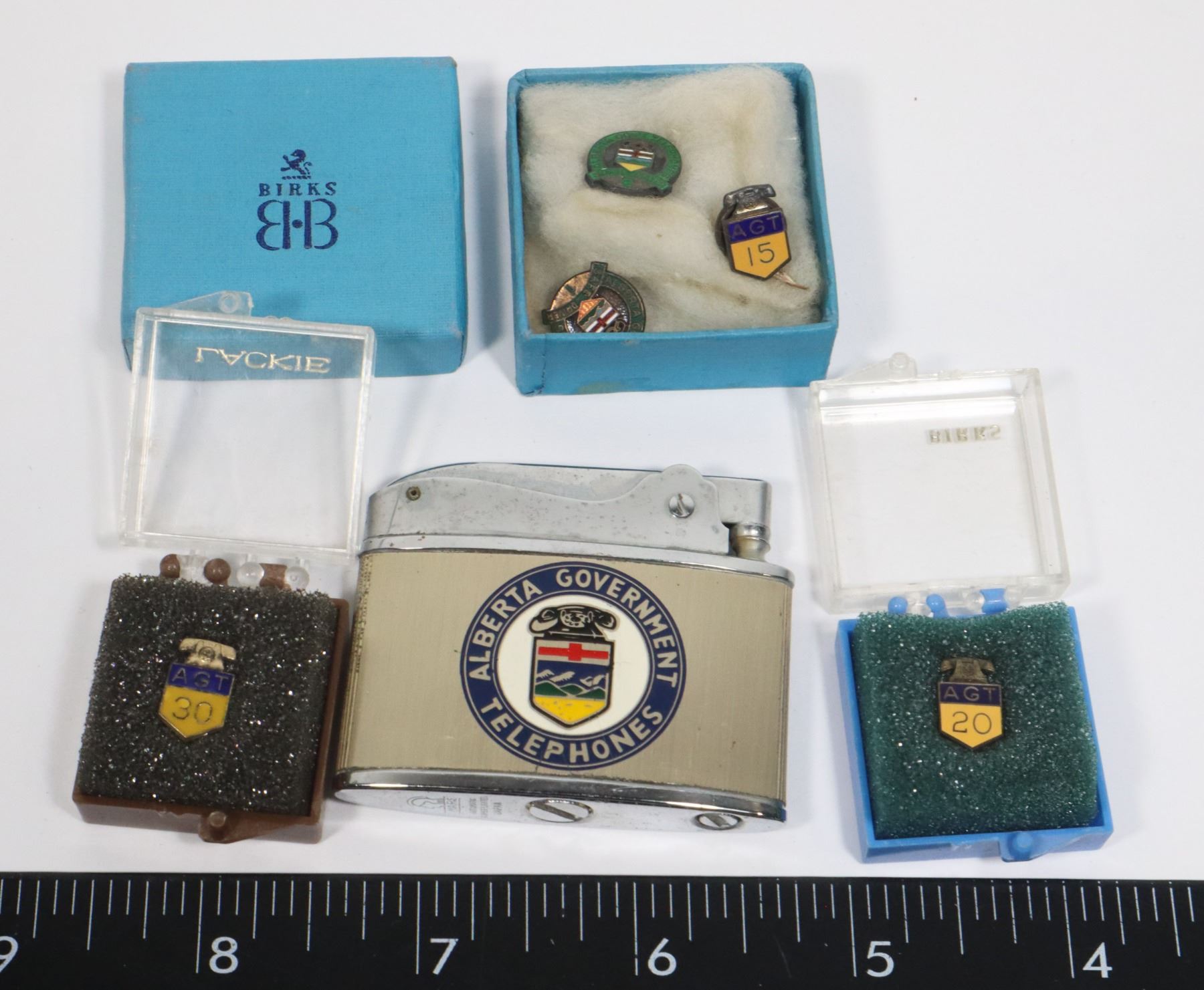 LIGHTER W/ 5 VINTAGE SERVICE PINS***ITEM(S) LOCATED IN LETHBRIDGE ALBERTA, FREE TRANSPORT TO OUR EDMONTON OFFICE AVAILABLE. WORLDWIDE SHIPPING IS AVAILABLE***