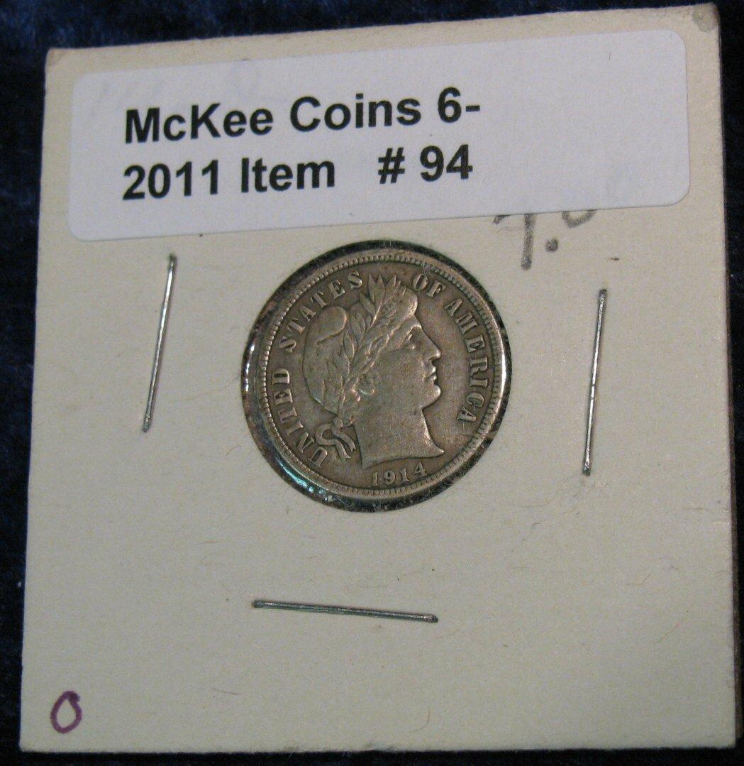 94. 1914 D Barber Dime. VF 20.