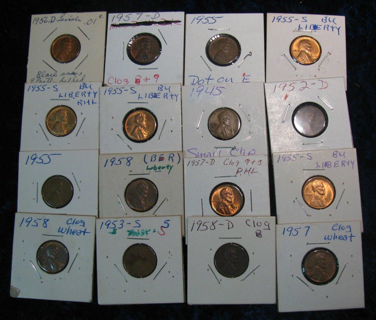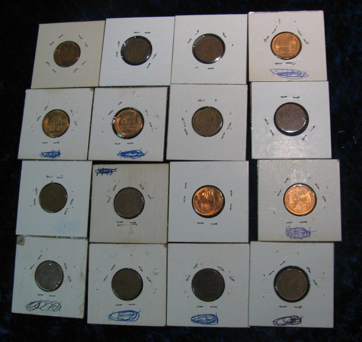 940. (16) Mint Error Lincoln Cents. Filled dies and etc.
