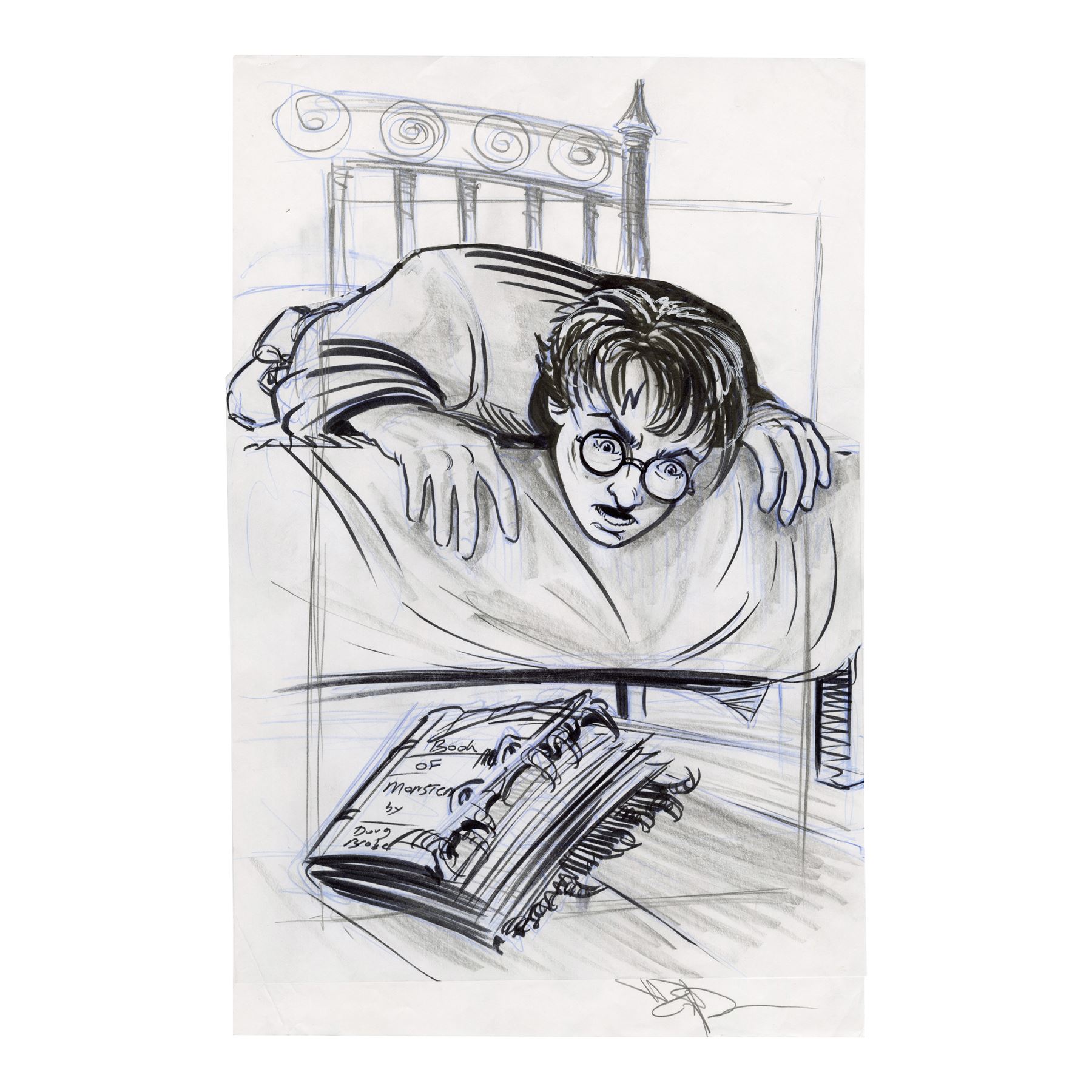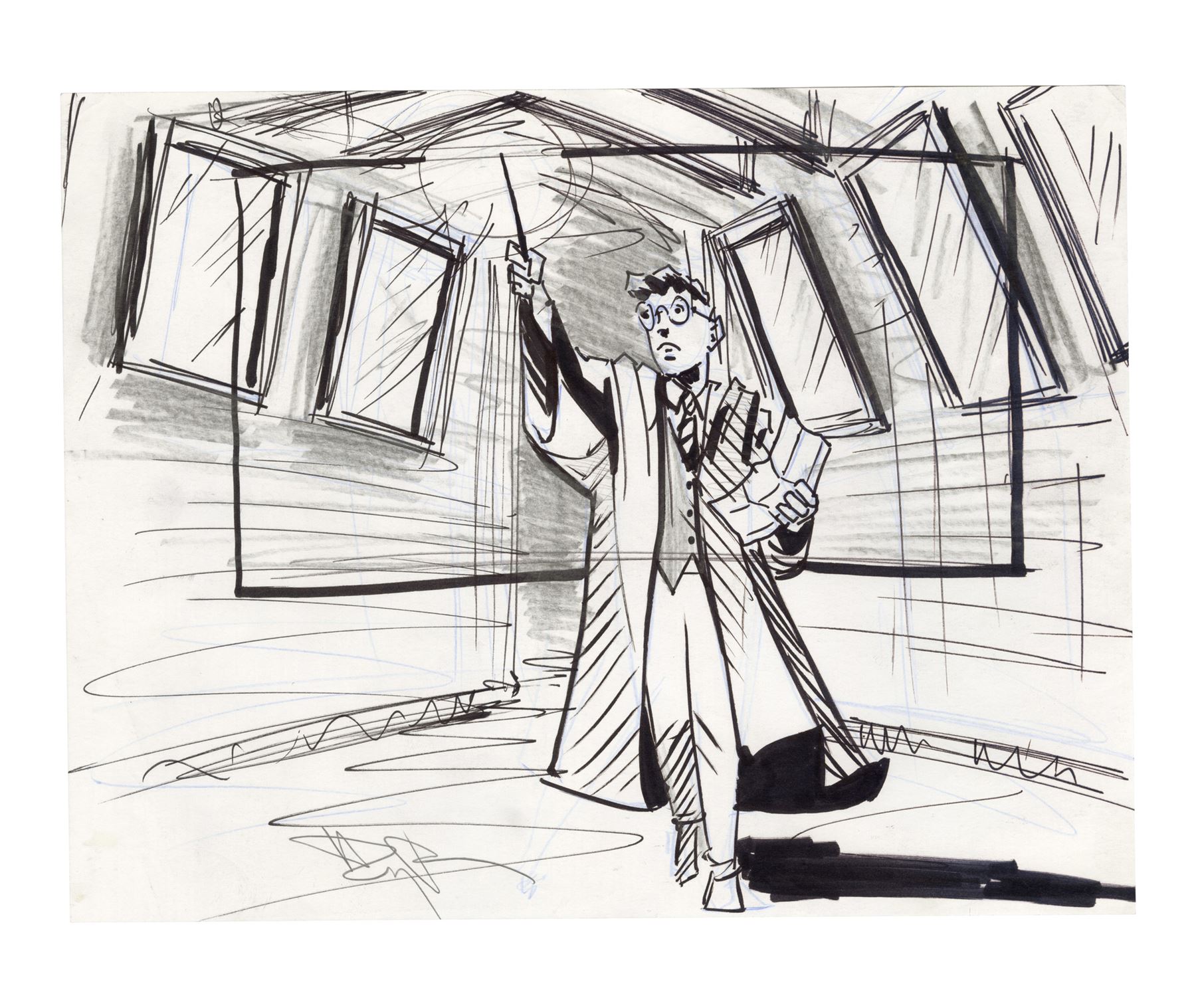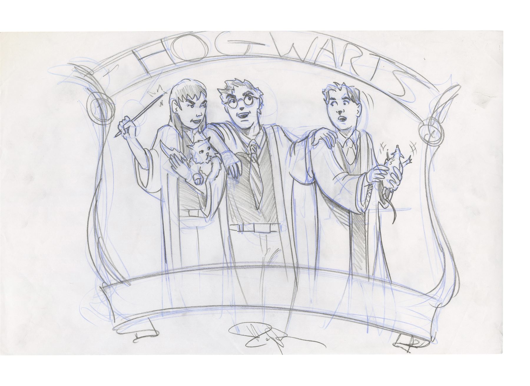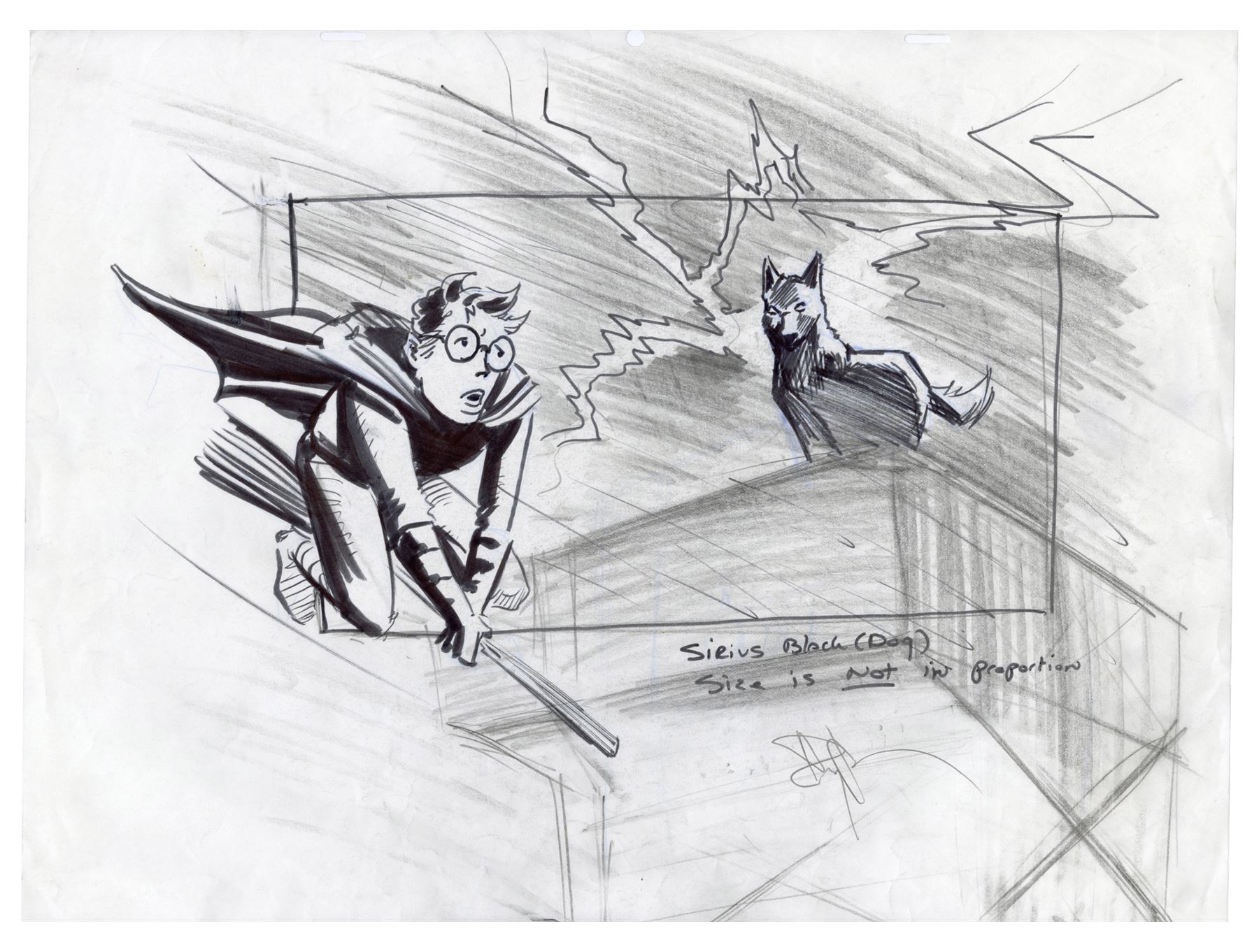 HARRY POTTER AND THE PRISONER OF AZKABAN (2004) - Set of 15 Hand-Drawn Doug Brode Licensing Concept Illustrations - Set of 15 licensing concept illustrations hand-drawn by concept artist Doug Brode for the promotion of Alfonso Cuaron's Harry Potter and the Prisoner of Azkaban. Warner Bros. used key sequences from the film to generate visual ideas for licensed promotional material.