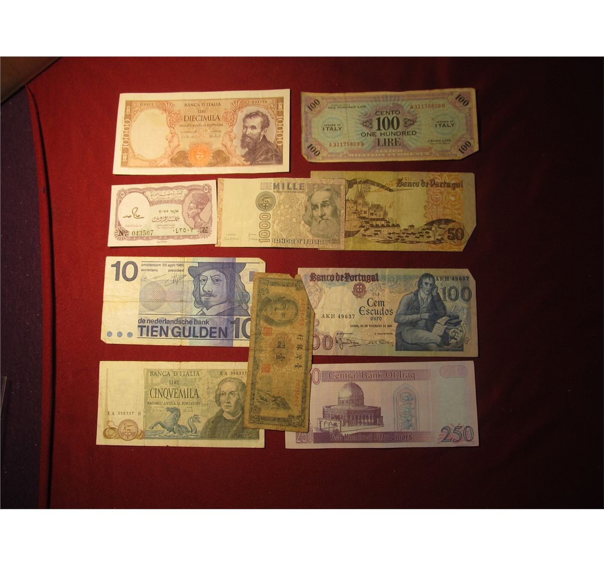 943. 10 (ten) mixed World Banknotes, WWII era to present