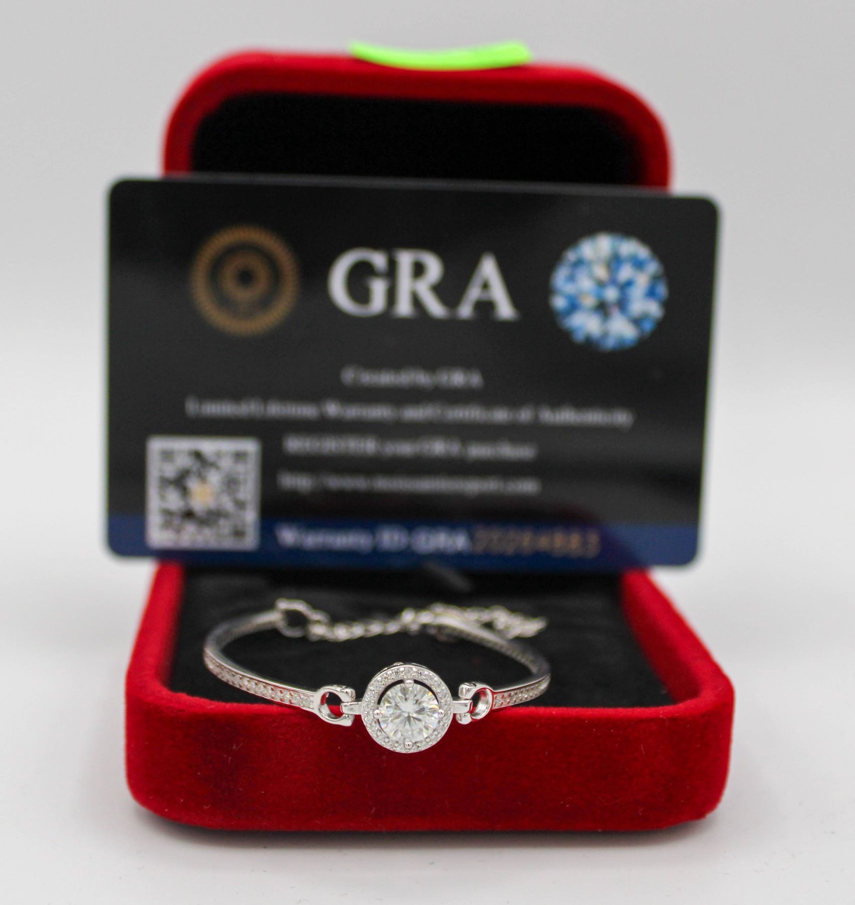STONE VVS D COLOR SET IN CENTER SURROUNDED BY ROUND HALO SET IN 925 SILVER BANGLE RETAIL VALUE $875.00 **ALL ITEMS MUST BE REMOVED BY 5PM SATURDAY, NOVEMBER 9TH 2024. ALL REMAINING ITEMS WILL BE SUBJECT TO A $6.00 PER DAY STORAGE CHARGE. ANY ITEMS REMAINING AFTER MONDAY, NOVEMBER 25TH 2024 WILL BE CONSIDERED FORFEITED. NO REFUNDS WILL BE ISSUED FOR FORFEITED ITEMS. TO SCHEDULE A PICK UP APPOINTMENT CLICK HERE
