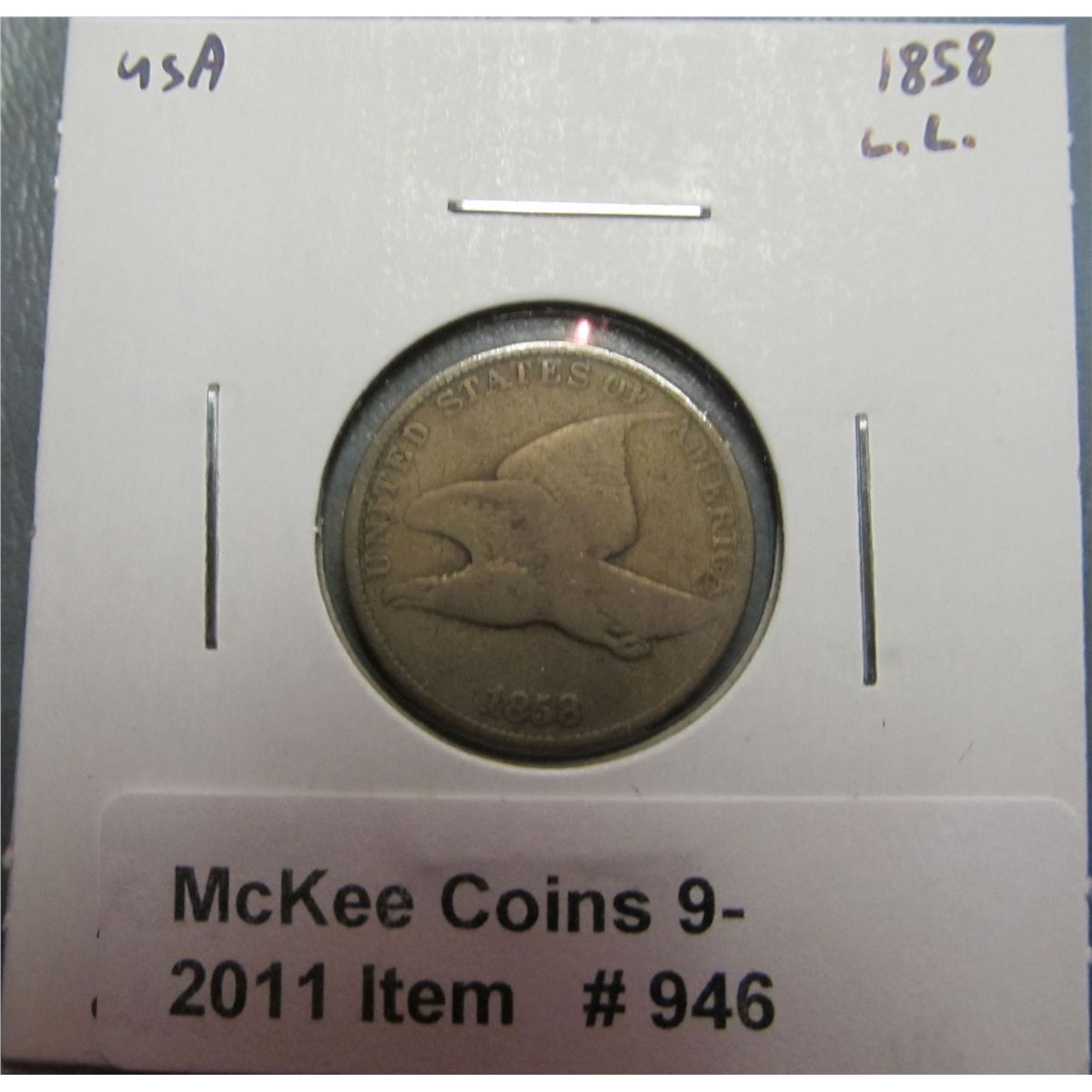 946. 1858 LL U.S. Flying Eagle Cent. VG-8.