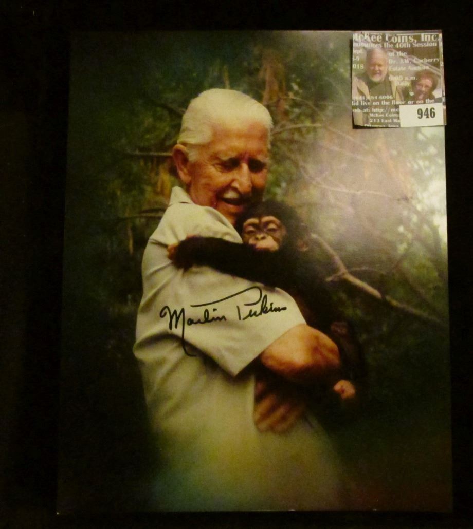 946 _ 8" x 10" color, autographed photo of Marlin Perkins with a Chimpanzee.