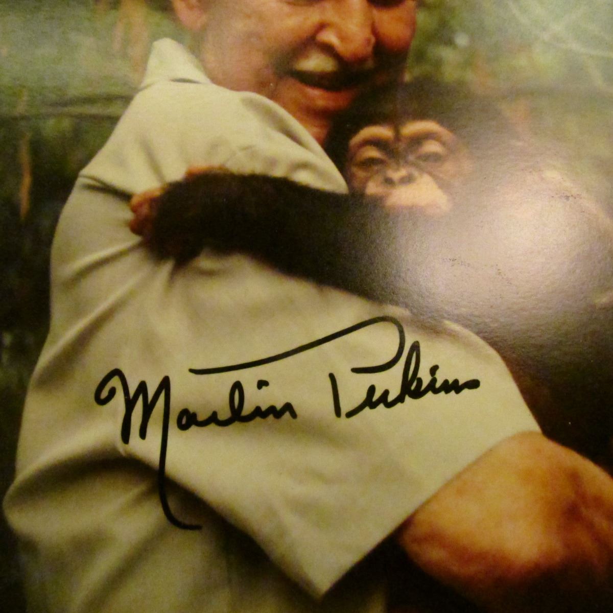 8" x 10" color, autographed photo of Marlin Perkins with a Chimpanzee.
