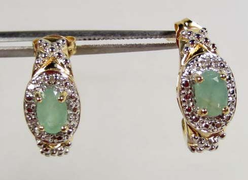 9476 - 14K WHITE GOLD OVER STERLING SILVER GREEN EMERALD EARRINGS