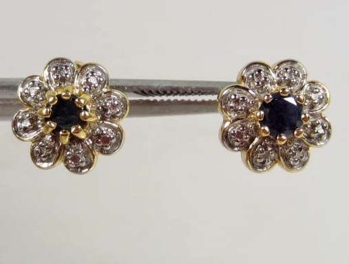 9477 - 14K GOLD OVER STERLING SILVER BLUE SAPPHIRE EARRINGS