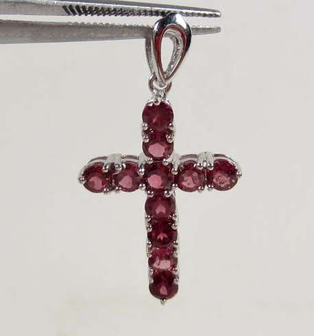 9479 - 14K WHITE GOLD OVER STERLING SILVER RHODOLITE GARNET PENDANT