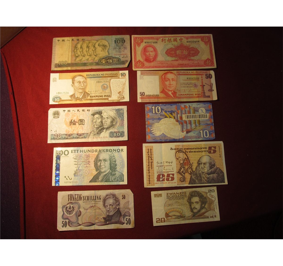 949. 10 (ten) mixed World Banknotes, WWII era to present