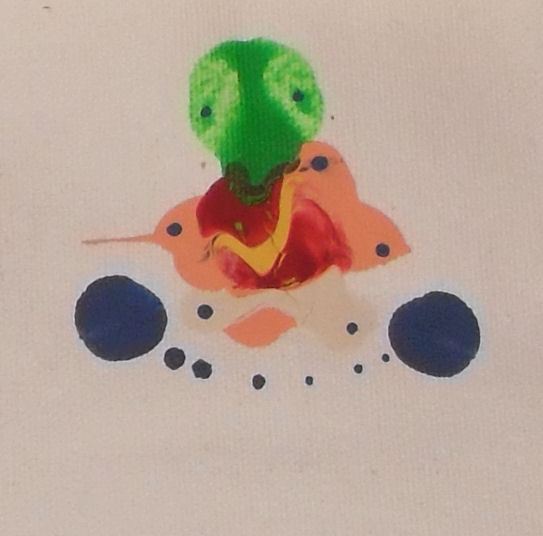 Here is the OTHER view of this LangdonArt fun painting on about 4x4 inches canvas, titled : "LangdonArt's Five Birds Planets", a metal frame can be provided if you want for your table, desk or shelve on wall or in your vitrine ;
