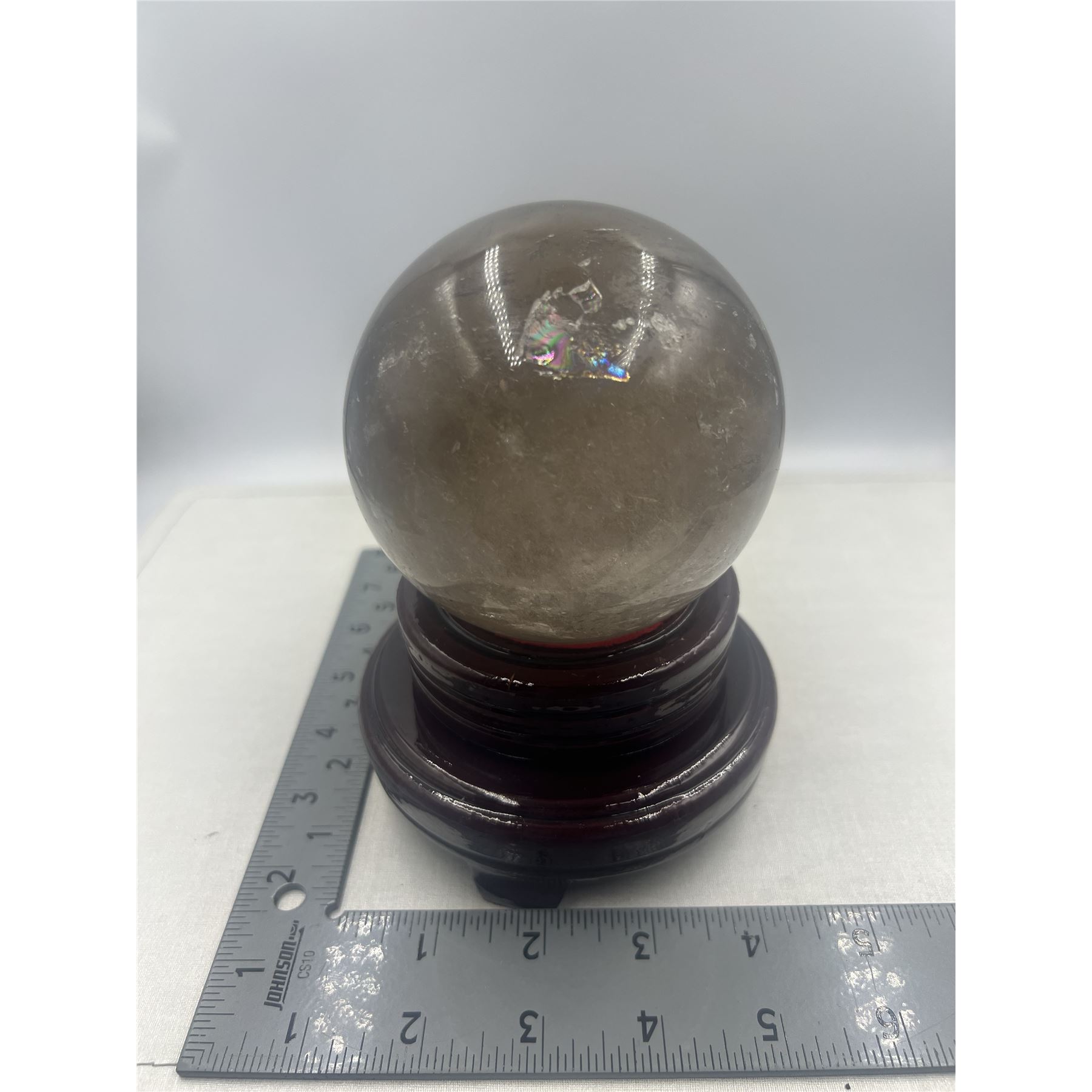 95.0 MM SMOKY QUARTZ SPHERE WITH INCULSION HIGH GRADE .