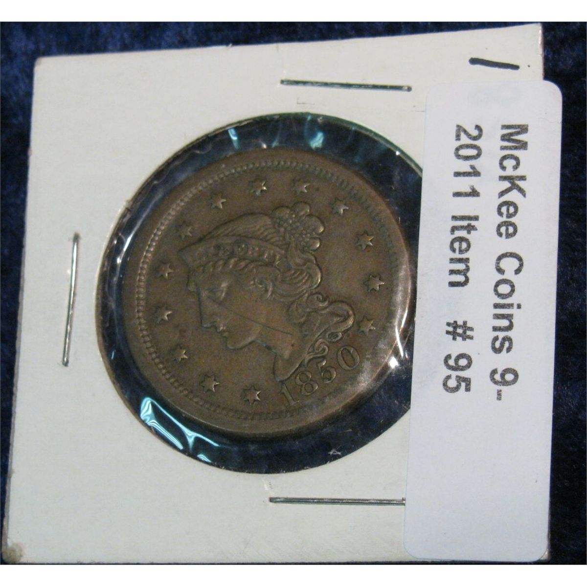 95. 1850 U.S. Large Cent. VF 20. Scratch on face.