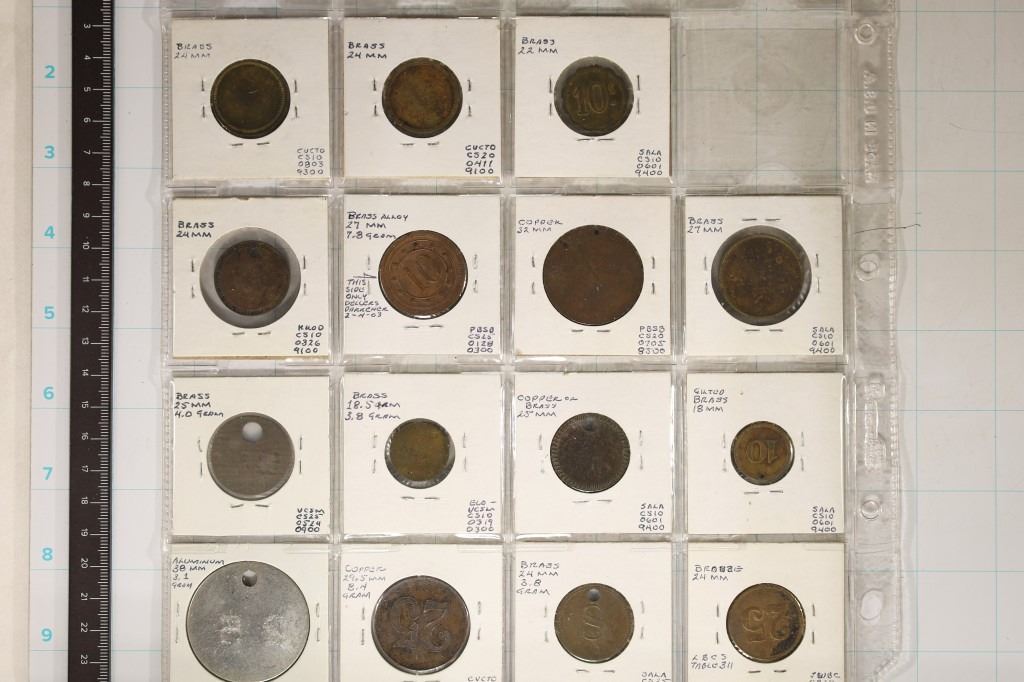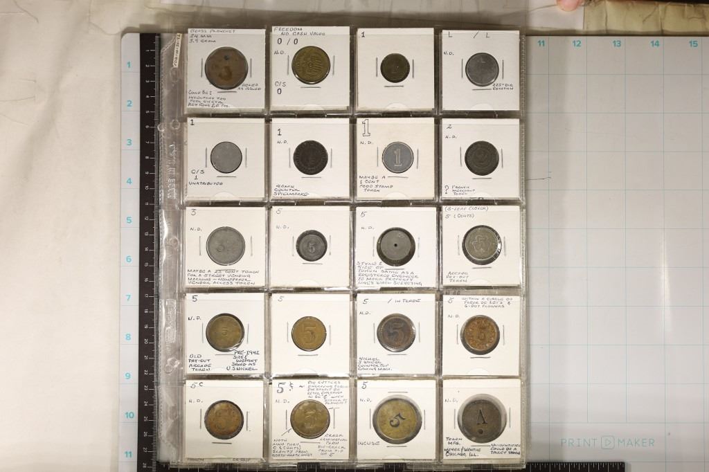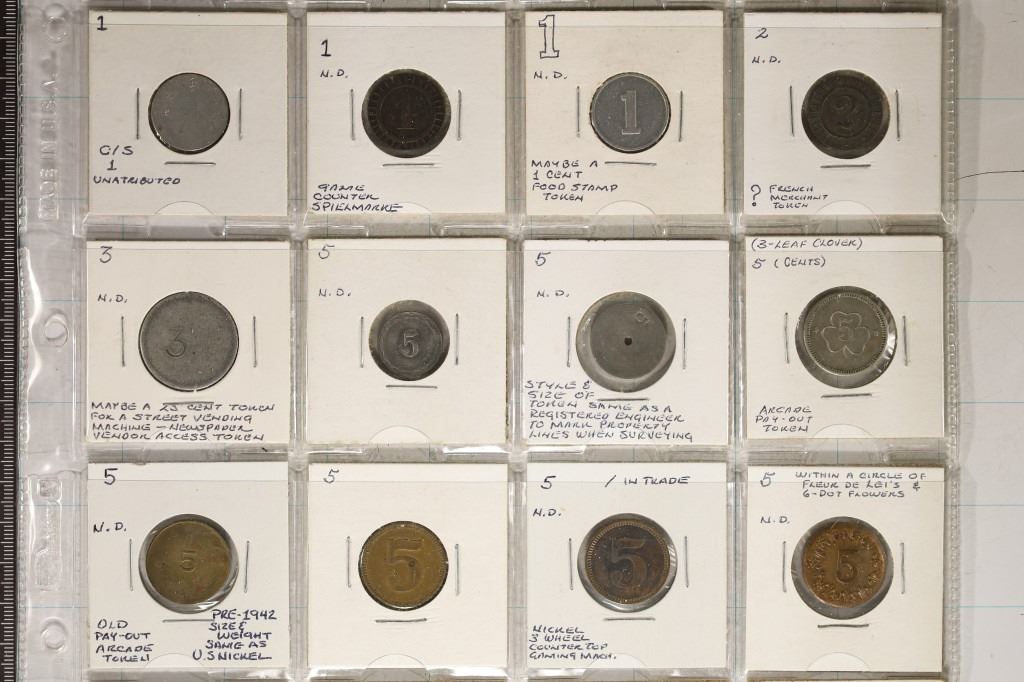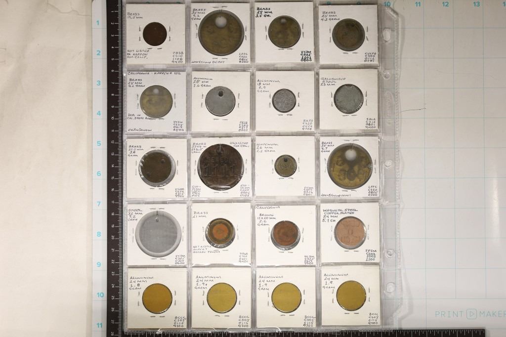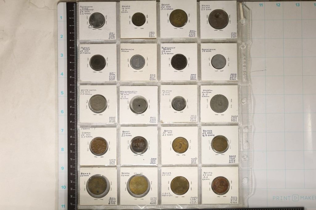 CLOTHING CHECK, PET TAG, ADVERTISING, CABINET TAG, AMUSEMENT, GOOD FOR, TIME CHECK, ARCADE, PAYOUT ETC... TOKENS. NEAT LOT OF SIZES, METALS ETC...