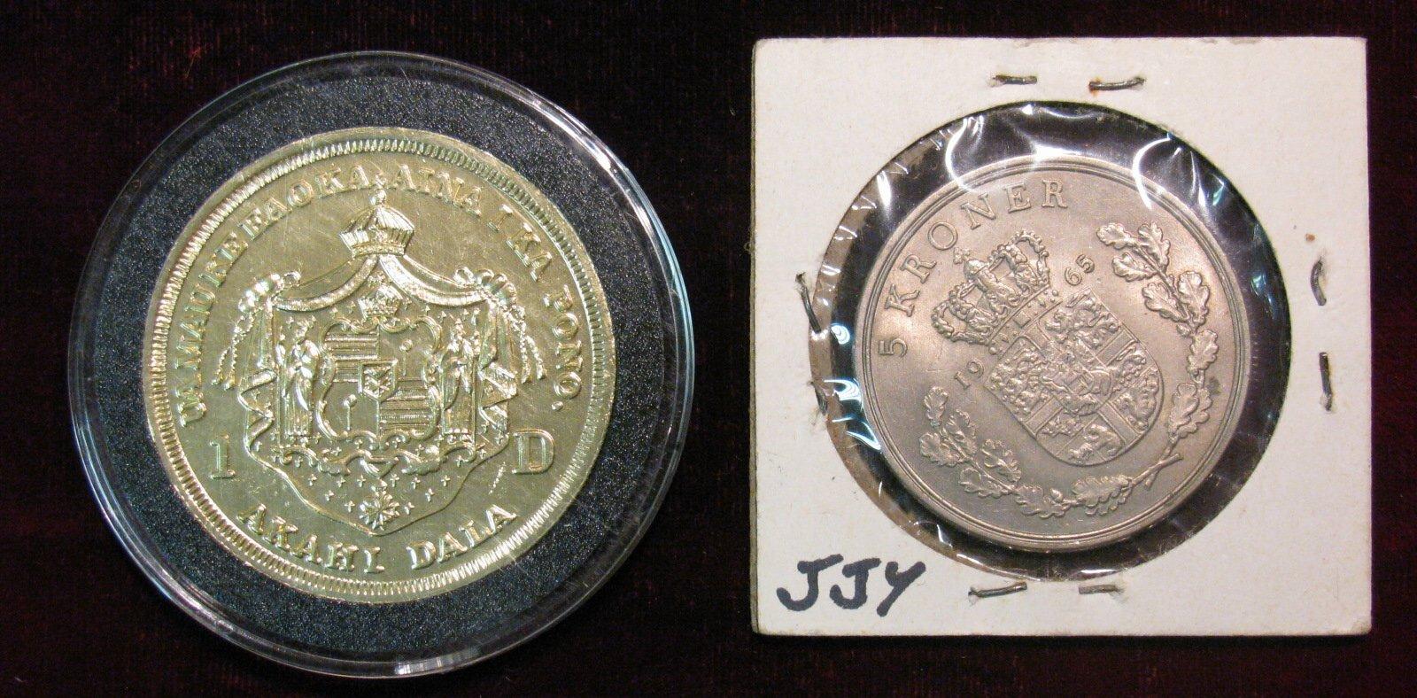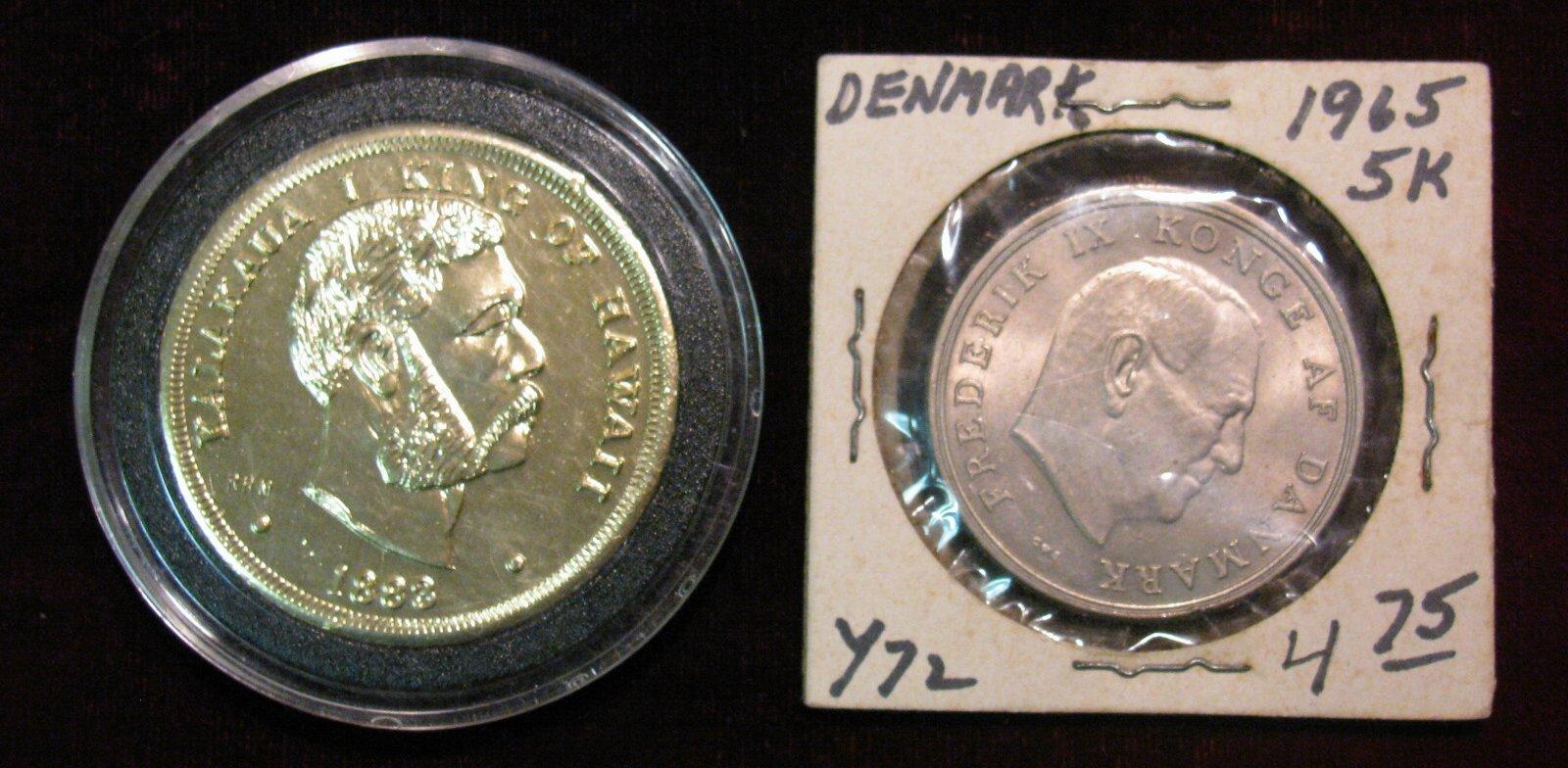 950. Copy 1883 Hawaii Dollar & 1965 Denmark 5-Kroner Unc.