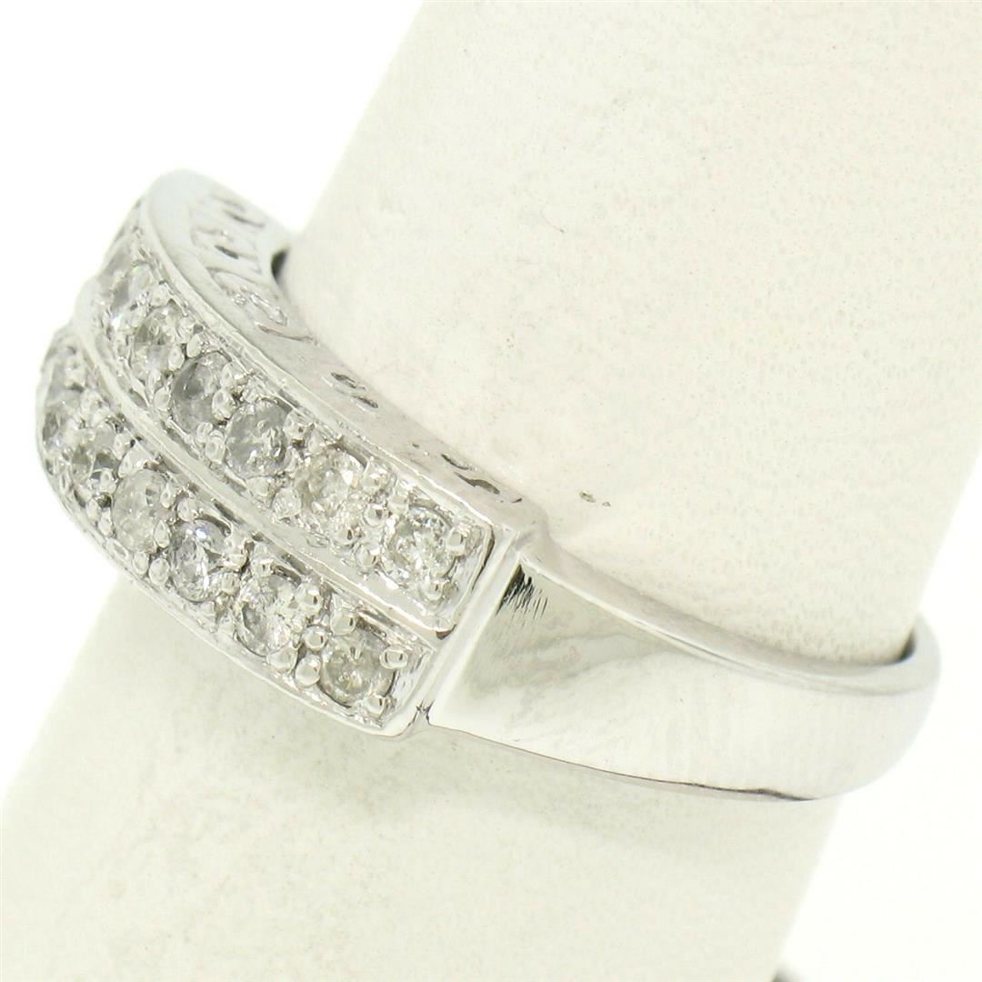 One Vintage .950 Platinum 0.72ctw Dual Row Round Diamond Band Ring w/ Open Gallery. Item Details: Material: Solid .950 Platinum , Weight: 6.2 Grams, Stone(s): (18) Natural Genuine Diamonds - Round Brilliant Cut - Prong Set - F/G Color - I1/I2 Clarity, Total Carat Weight: 0.72 (approx.), Ring Size: 7.5 (We can custom size this ring.), Ring Width: 6.5mm, Ring Height: 4mm rise off the finger, Condition: Vintage ring, excellent condition!
