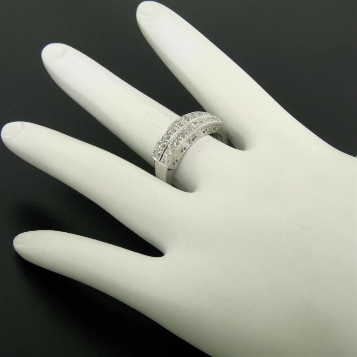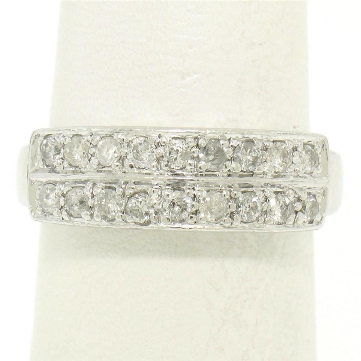 One Vintage .950 Platinum 0.72ctw Dual Row Round Diamond Band Ring w/ Open Gallery. Item Details: Material: Solid .950 Platinum , Weight: 6.2 Grams, Stone(s): (18) Natural Genuine Diamonds - Round Brilliant Cut - Prong Set - F/G Color - I1/I2 Clarity, Total Carat Weight: 0.72 (approx.), Ring Size: 7.5 (We can custom size this ring.), Ring Width: 6.5mm, Ring Height: 4mm rise off the finger, Condition: Vintage ring, excellent condition!