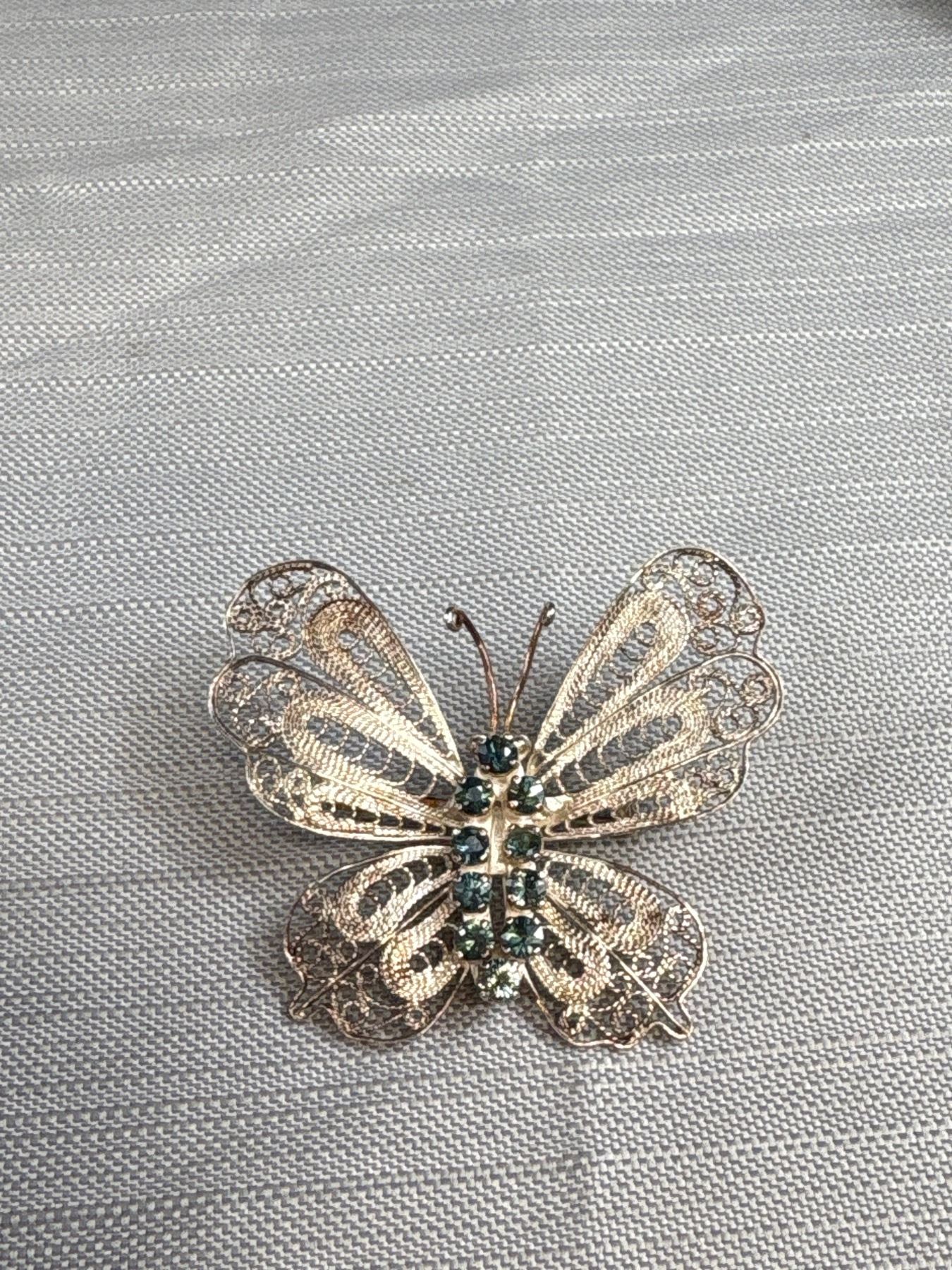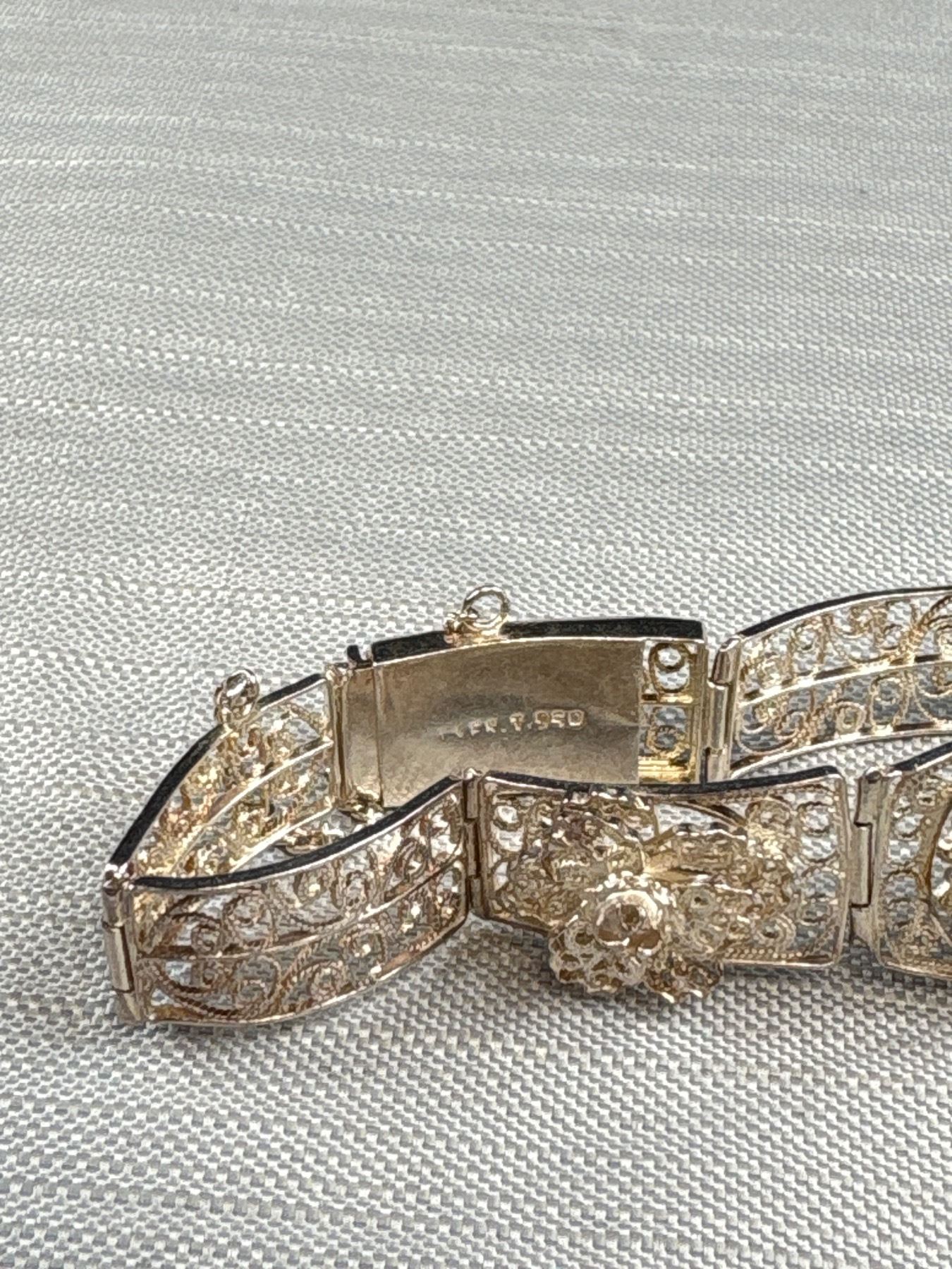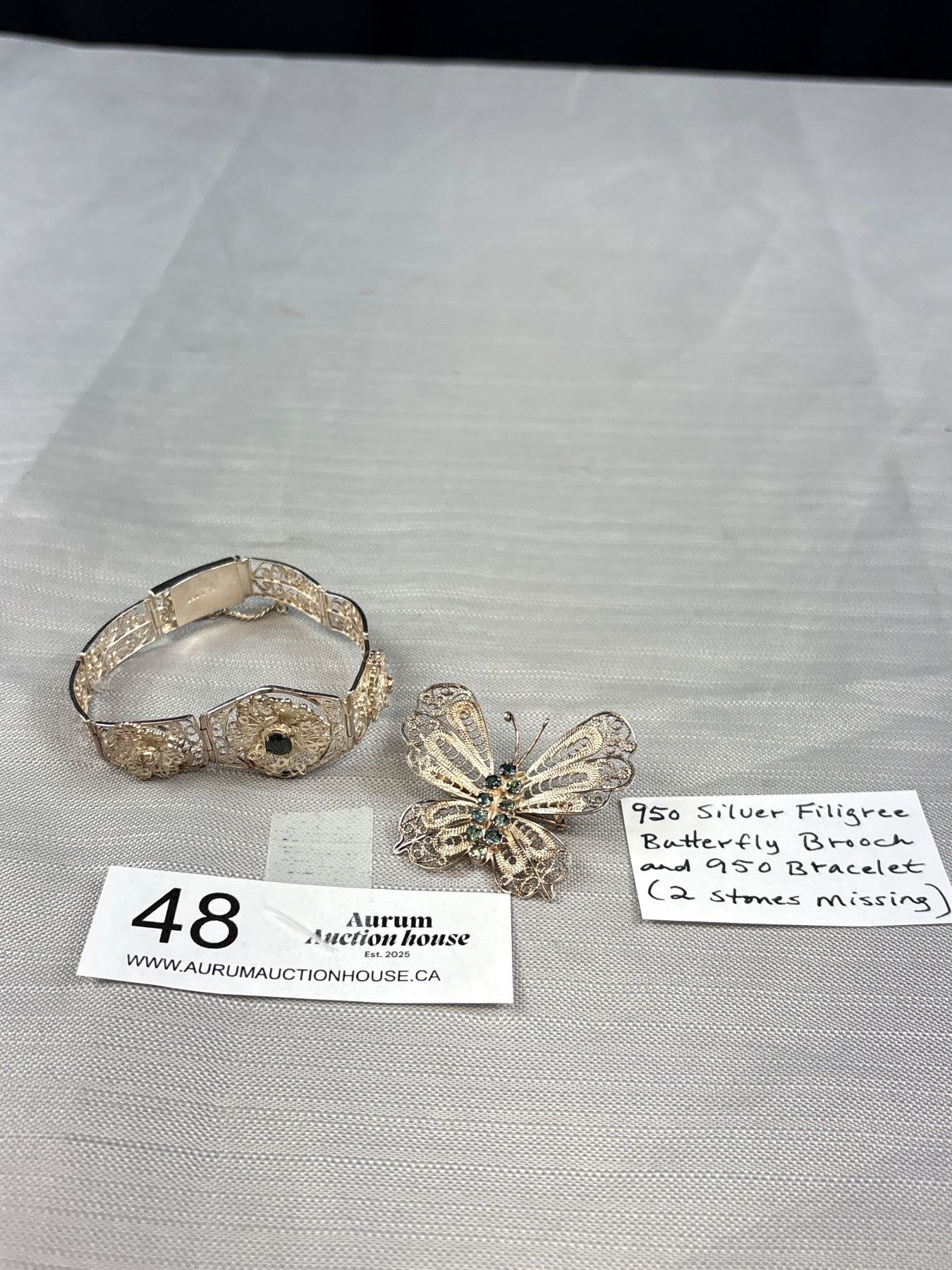 950 Silver Filigree Butterfly Brooch and 950 Bracelet (2 Stones Missing)
